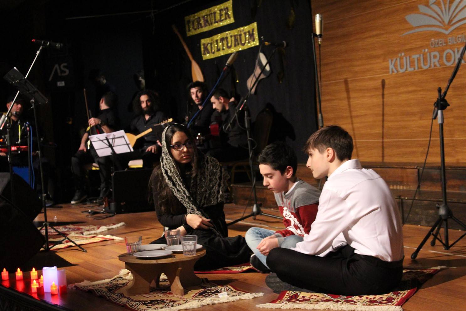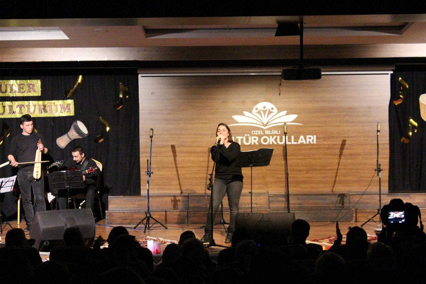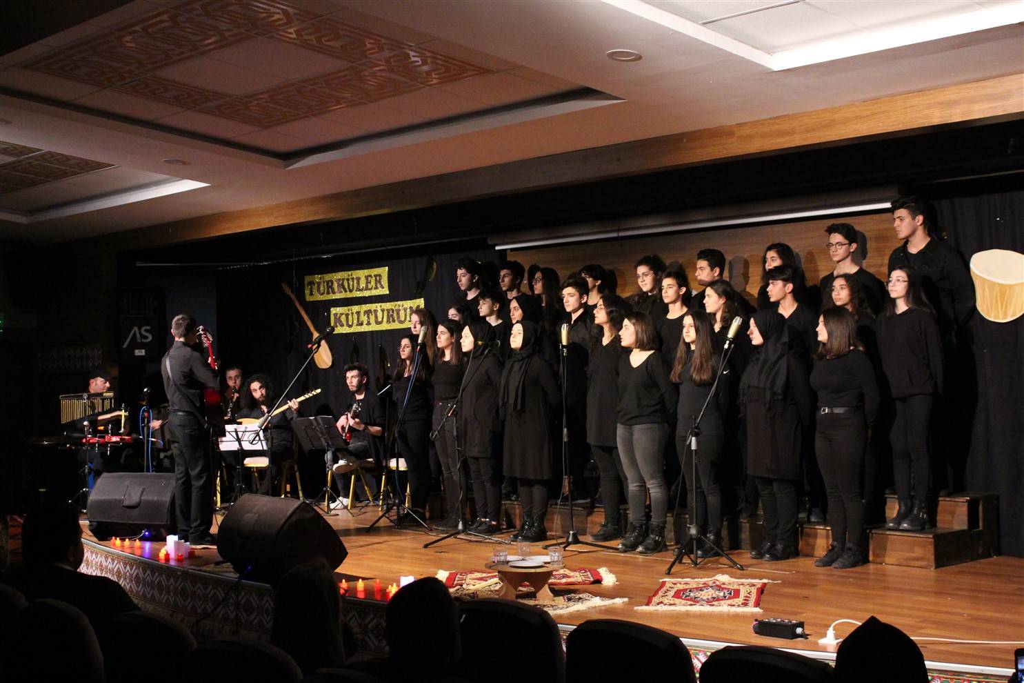 Okulumuzun düzenlemiş olduğu en büyük etkinliklerimizden birisi olan 3. Geleneksel Türküler Kültür’üm bu yılda muhteşem bir şekilde ve yoğun katılım ile gerçekleşti. Konferans salonumuzda gerçekleştirdiğimiz Anadolu’nun her köşesine türkülerimizle yolculuk yaptığımız gecede ilkokuldan liseye kadar tüm düzeylerden öğrencilerimiz görev aldı. Her birinin ayrı hikayelerinin olduğu türkülerimizin seslendirildiği gecede orkestra da dinleyenleri mest etti. Yaklaşık 2 aydır bu gece için hazırlanan ve seslendirdikleri türküler ile kulaklarımızın pasını silen tüm öğrencilerimize ve öğretmenlerimize, etkinliğimizde bizleri yalnız bırakmayan tüm velilerimize teşekkür ederiz.