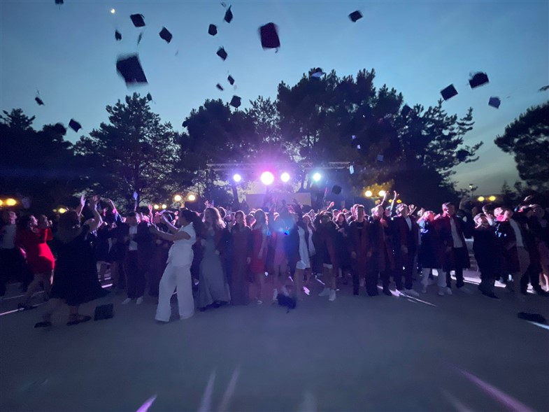 2023-2024 Eğitim Öğretim yılı Mezuniyet Törenimizi görkemli bir şekilde gerçekleştirdik. Emex Otel’de gerçekleşen mezuniyet törenimizde Ortaokul ve Anadolu - Fen Lisesi öğrencilerimizi mezun ettik. Saygı duruşu ve İstiklal Marşı ile başlayan program, protokol konuşmaları, ödül takdimleri, flama devir teslimi ve kep atma töreni ile devam etti. Üniversite ve Liseye adım atan öğrencilerimiz büyük sevinç yaşarken, arkadaşlarından ayrılacak olmanın da hüznünü yaşadılar. Töreninin sonlanması ile birlikte öğrencilerimiz konser eşliğinde gece boyunca doyasıya eğlendiler.