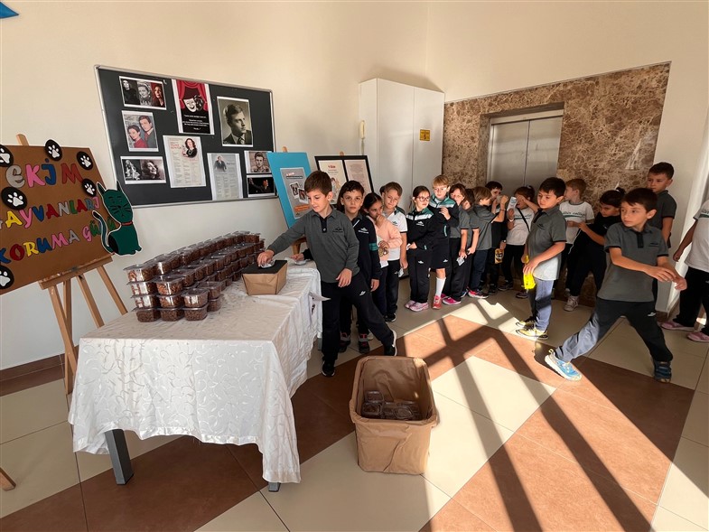 Okulumuzda 4 Ekim Dünya Hayvanları Koruma Günü'nü mama kumbarası ve bilgilendirici bir seminer ile kutladık. Öğrencilerimiz veteriner hekim M. Özge Altınay rehberliğinde hayvan bakımı ve hakları hakkında bilgi sahibi olurken, bağışları ile dostlarımıza destek oldular. Bu değerli etkinlikte emeği geçen tüm öğrencilerimize ve öğretmenlerimize teşekkür ederiz.