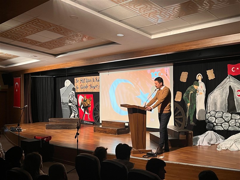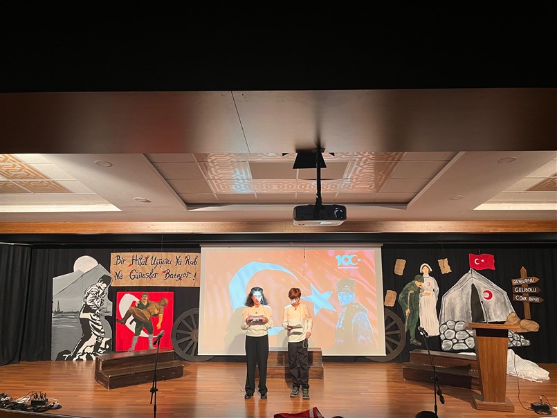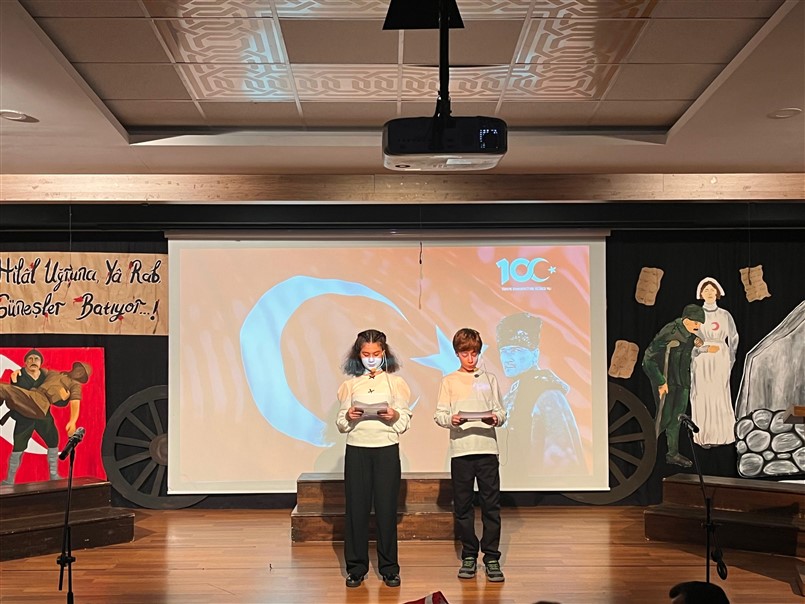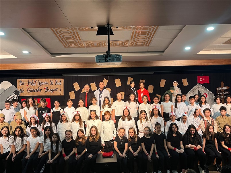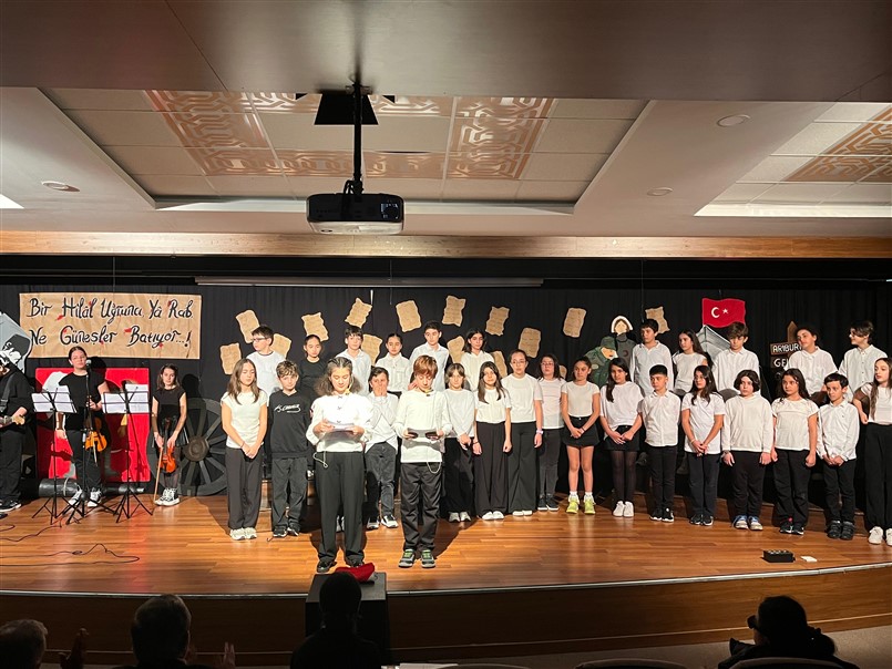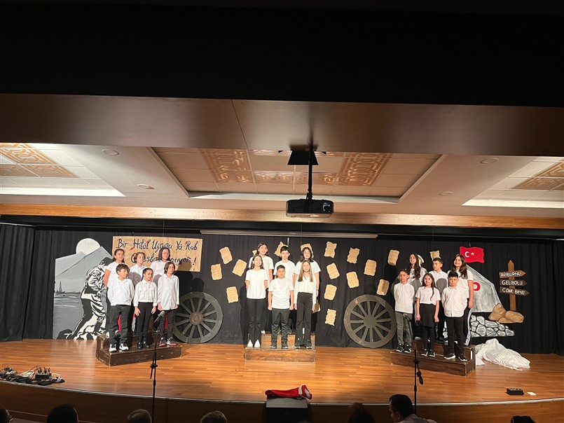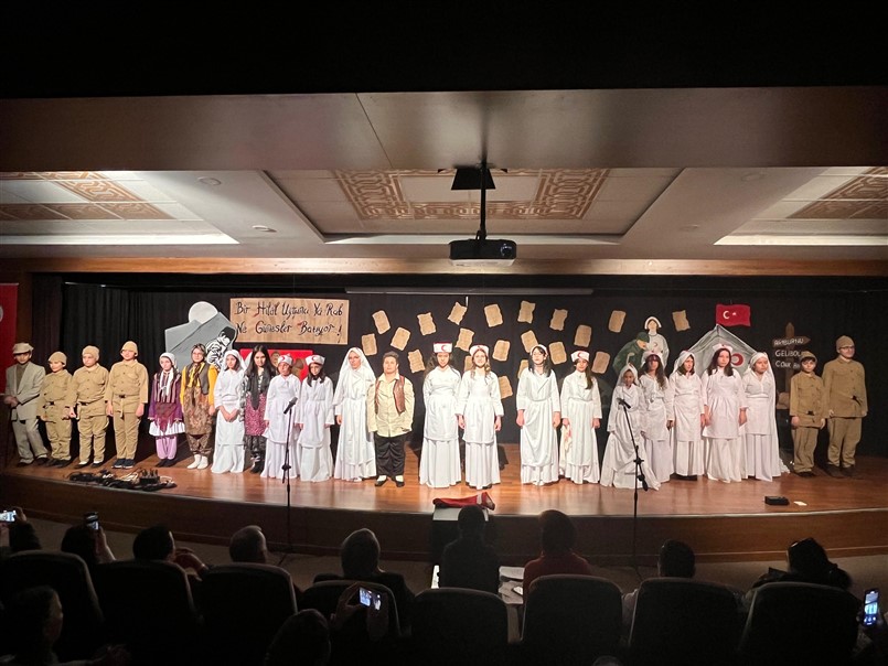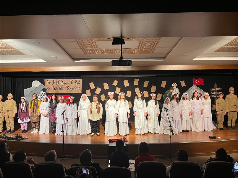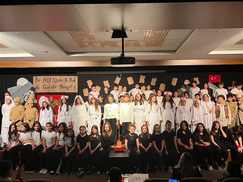 Bugün, şehitlerimizi saygı ve minnetle anmak için düzenlediğimiz programda öğrencilerimiz oratoryo, tiyatro, şehitleri saygı koreografisi ve koro ile büyük destanı sahnede canlandırdı.