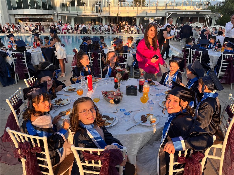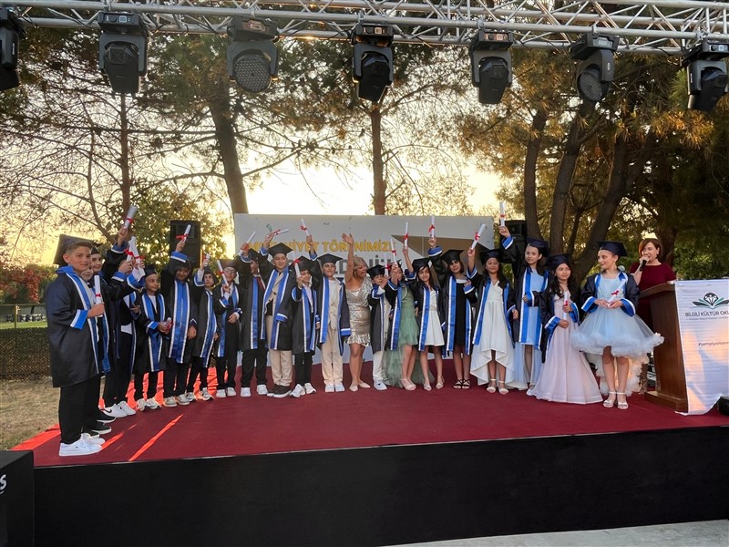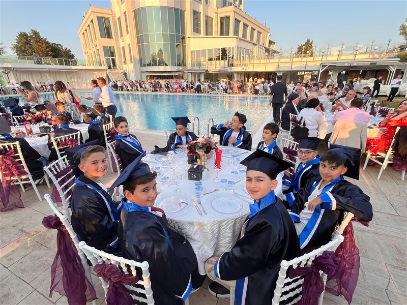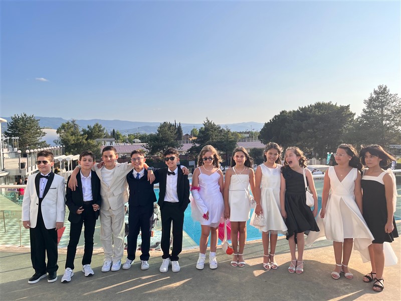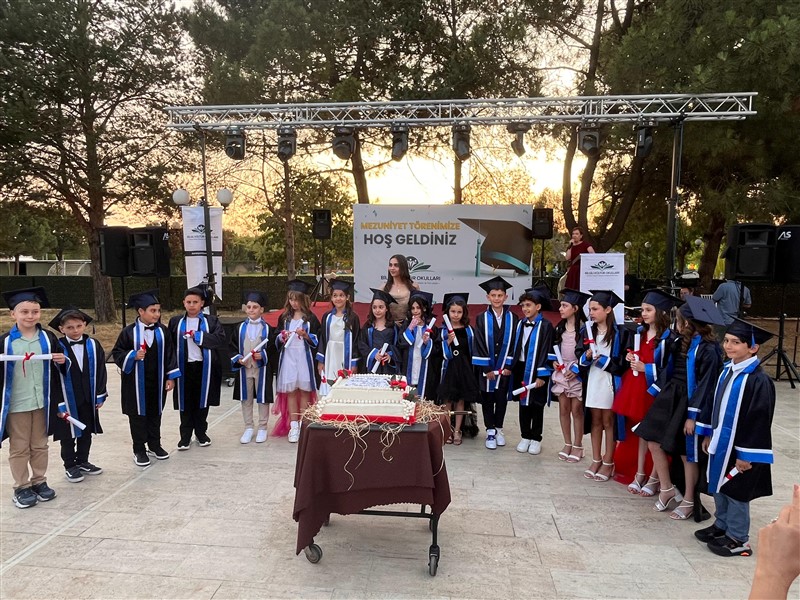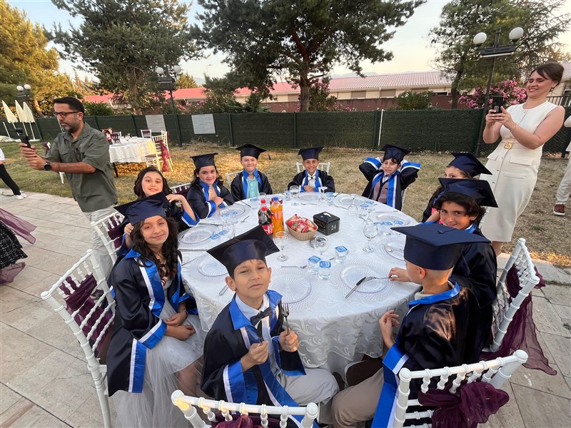 Öğrencilerimiz, mezuniyet keplerini gururla havaya atarak ilkokul eğitimlerini tamamladı. Törenin ardından düzenlenen kutlama etkinliğiyle bu özel gün keyifle sonlandı.