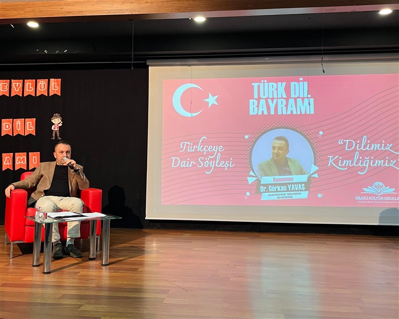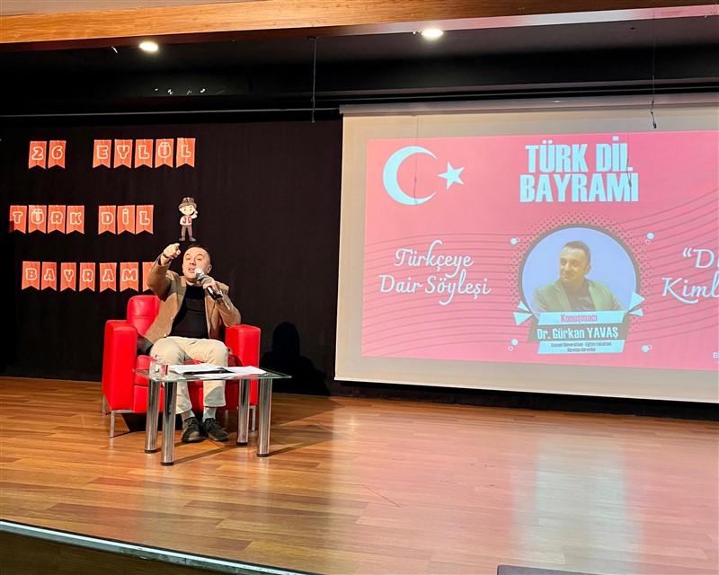 Türk Dil Bayramı kapsamında Kocaeli Üniversitesi Eğitim Fakültesinden Yazar Gürkan Yavaş’ı ağırladık. ‘Dilimiz Kimliğimiz’ başlıklı söyleşide Türkçemizin milletimizin ortak değeri ve kimliğimizin en güçlü unsuru olduğu vurgulandı.