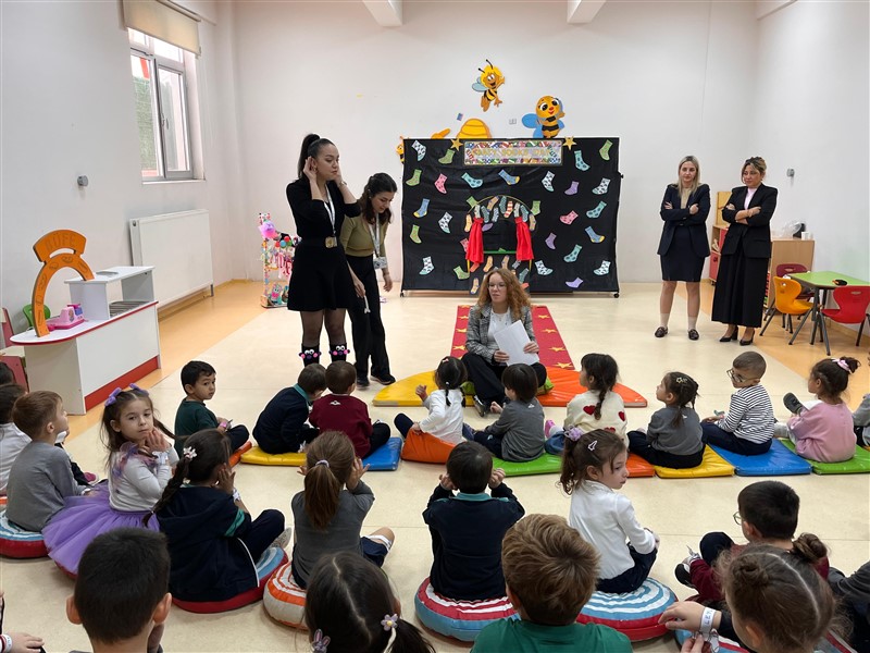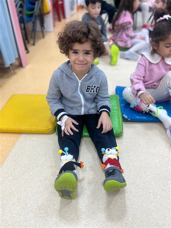 Minik tasarımcılarımız kendi çılgın çoraplarını tasarladı, onları eğlenceli bir kukla gösterisinde canlandırdı ve öğretmenlerinin onlar için yazdığı Crazy Socks Hikayesi’ni dinlediler. Sorulara yanıt verdiler, tasarımlarını podyum yürüyüşüyle sergilediler ve günü renkli bir Crazy Socks Partisiyle tamamladılar! Çünkü öğrenmek, en çılgın çoraplarımızı giydiğimizde her zaman daha eğlenceli! 🩷