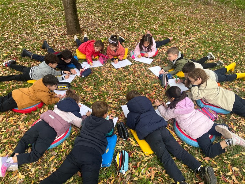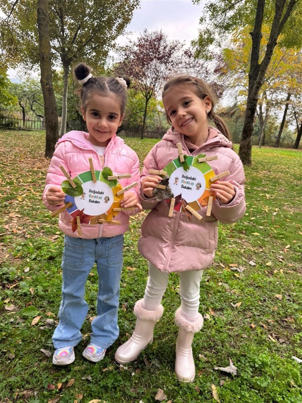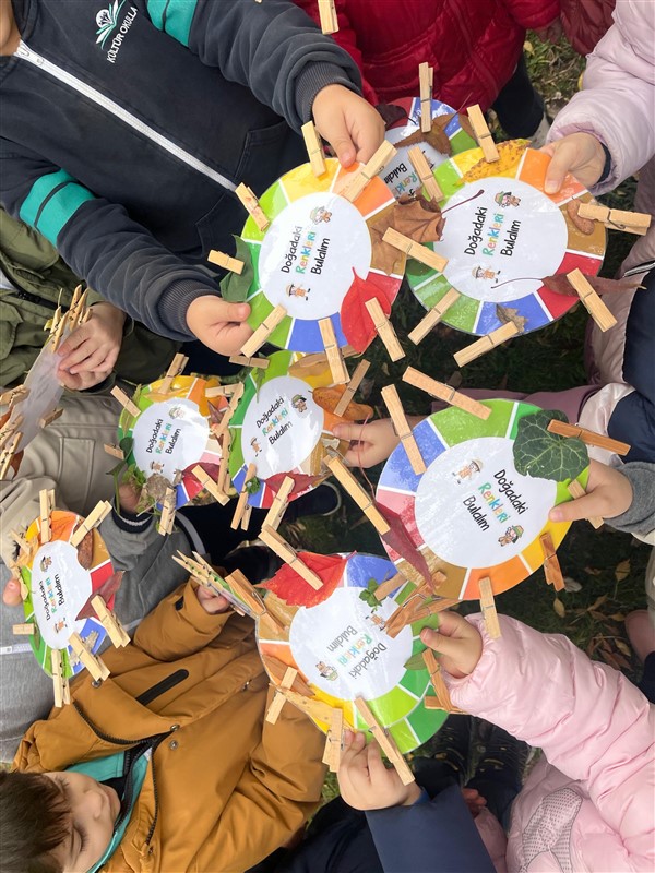 Öğrencilerimizle doğadaki değişimleri incelemek ve gözlem yapmak amacıyla keyifli bir yürüyüş gerçekleştirdik. Doğayı dikkatle inceledik, gördüklerimizi ve duyduklarımızı renklerle resmettik. Renk çarkımızı kullanarak yaprakların birbirinden güzel tonlarını grupladık, doğanın büyüleyici renk armonisini keşfettik.