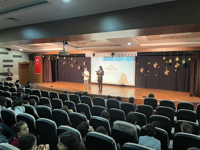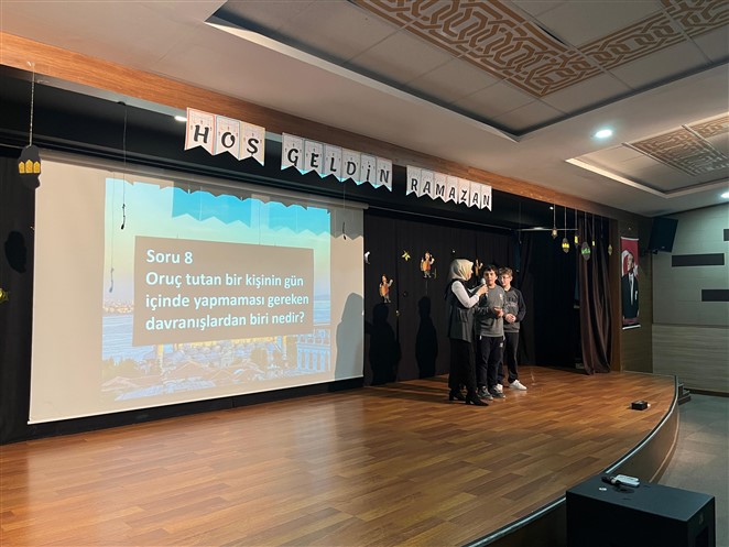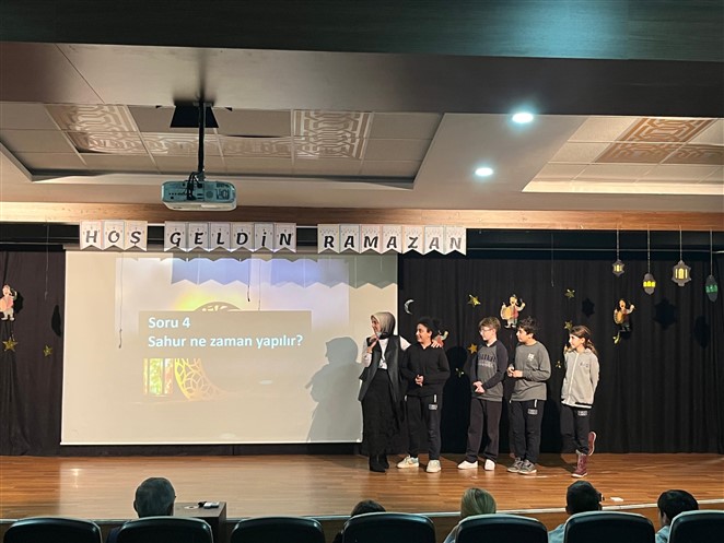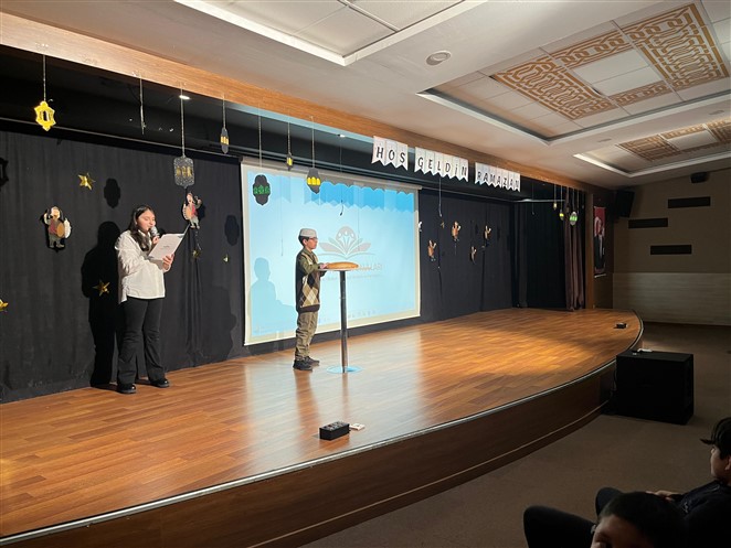 Ramazan ayının manevi atmosferini hep birlikte karşılamak amacıyla düzenlediğimiz “Hoş Geldin Ramazan” programı büyük bir coşku ve anlam içinde gerçekleştirildi. Yarışmalarla öğrencilerimiz hem bilgilerini ortaya koydu hem de keyifli anlar yaşadı. Koro ekibimizin seslendirdiği eserler salona huzur katarken, sahnelenen tiyatro gösterisi programın anlamını pekiştiren güçlü bir bölüm oldu.