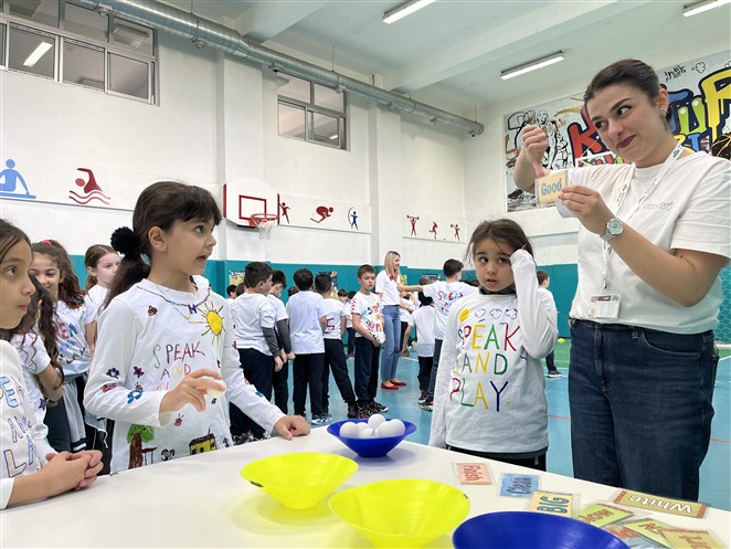 Farklı istasyonlarda kurulan oyunlarla öğrencilerimiz hem keyifli vakit geçirdi hem de İngilizce konuşma becerilerini aktif olarak kullandılar. Oyun temelli öğrenme sayesinde kelimelerini pekiştirirken, özgüvenle iletişim kurma fırsatı yakaladılar.