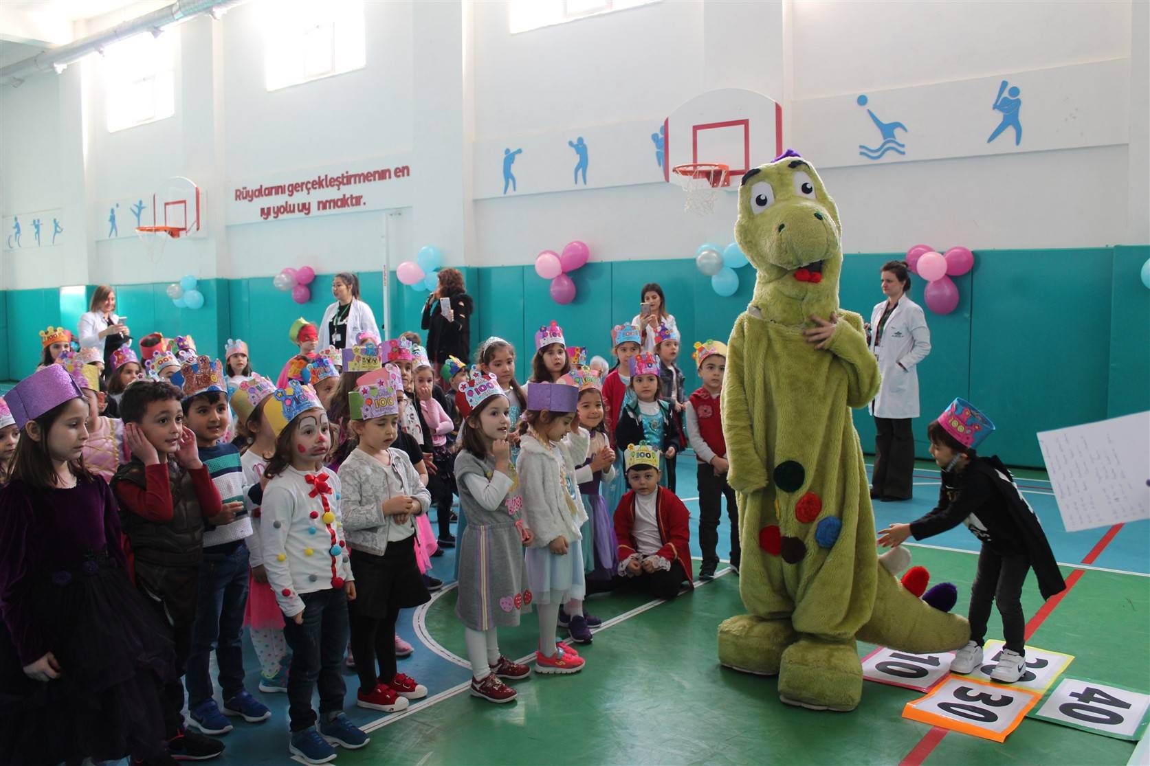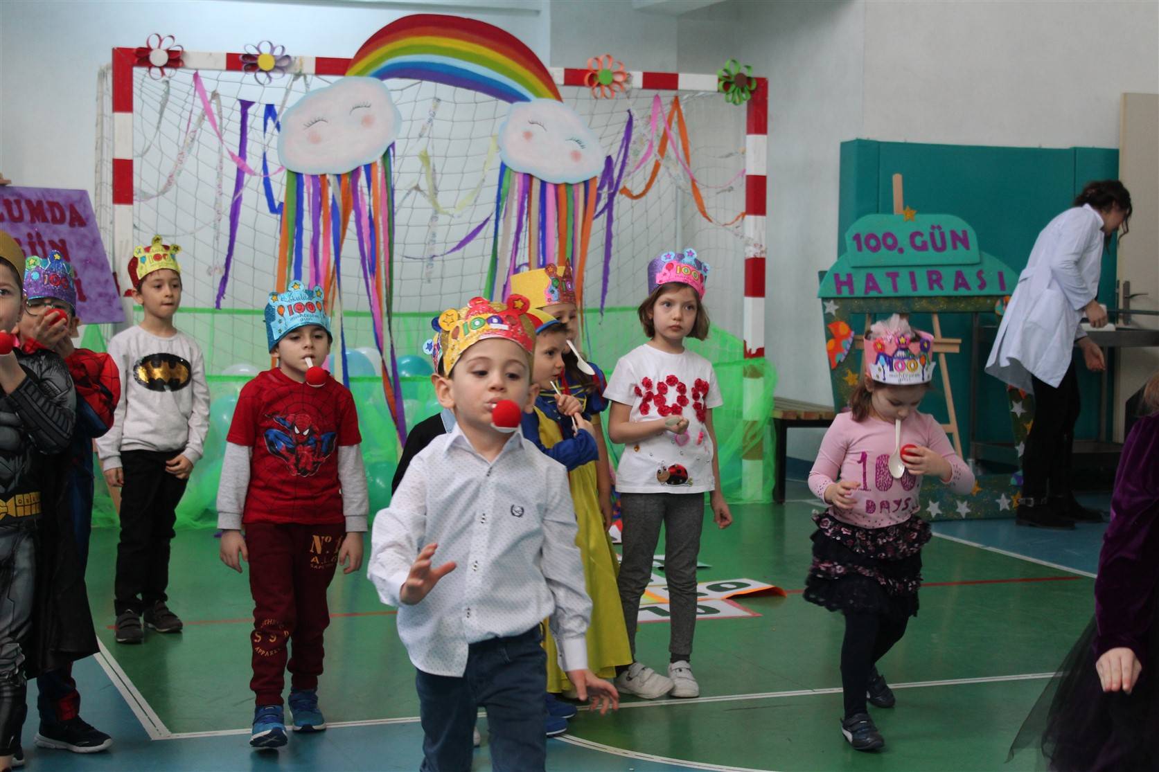 Okulumuzun en miniklerine mükemmel bir parti düzenledik. Okulda geçirdikleri 100. gün anısına düzenlenen partide anasınıfı öğrencilerimiz doyasıya eğlendiler. Birbirinden farklı etkinliklerin ve yarışmaların yapıldığı partide, hazırlanan 100. gün pastası anasınıfı öğretmenlerimiz tarafından kesildi.