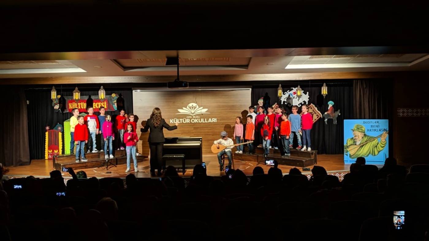 Kültür Gecesi programımızın ikinci gösterisini 2-B sınıfı öğrencilerimiz gerçekleştirdi. Programda İlkokul Müdürümüz Sevda Saraçoğlu gecenin anlam önemine dair konuşma yaptı. Öğrencilerimizin gösterilerini izleyen velilerimiz ise duygusal anlar yaşadılar.