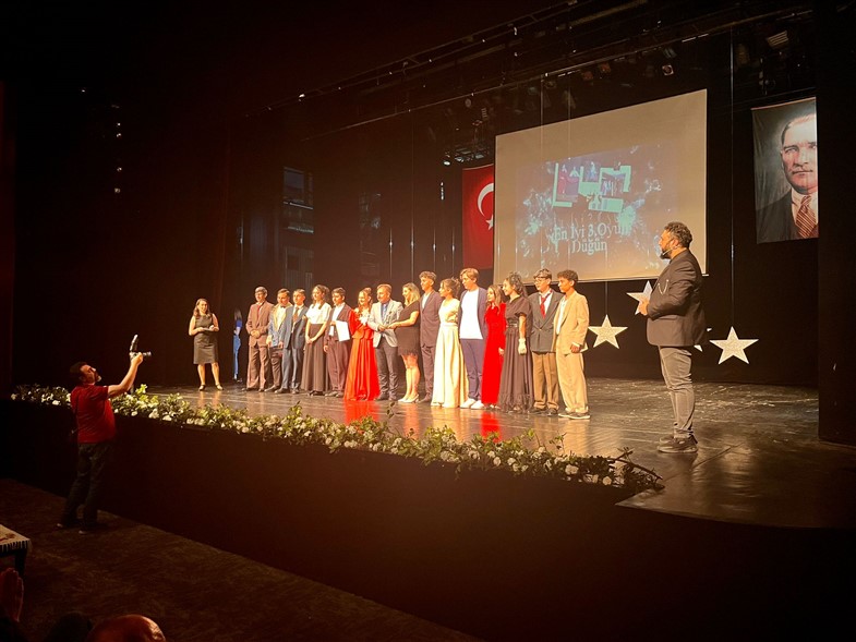 15. Tiyatro Festivali’nde okulumuzu temsil eden Öğretmenimiz Cansu Dursun ve Kültür Tiyatro Ekibi Öğrencilerimiz festivalden iki ödül ile ayrıldı. Okulumuz öğrencilerinden Doğukan Gültekin, telgrafçı rolü ile En İyi Yardımcı Erkek Oyuncu Ödülü'nü alırken; Anton Çehov / Düğün Tiyatro gösterimiz ise En İyi 3. Oyun Ödülü’nü aldı. Öğrencilerimizi ve Drama Öğretmenimiz Cansu Dursun’u başarılarından dolayı tebrik ederiz.