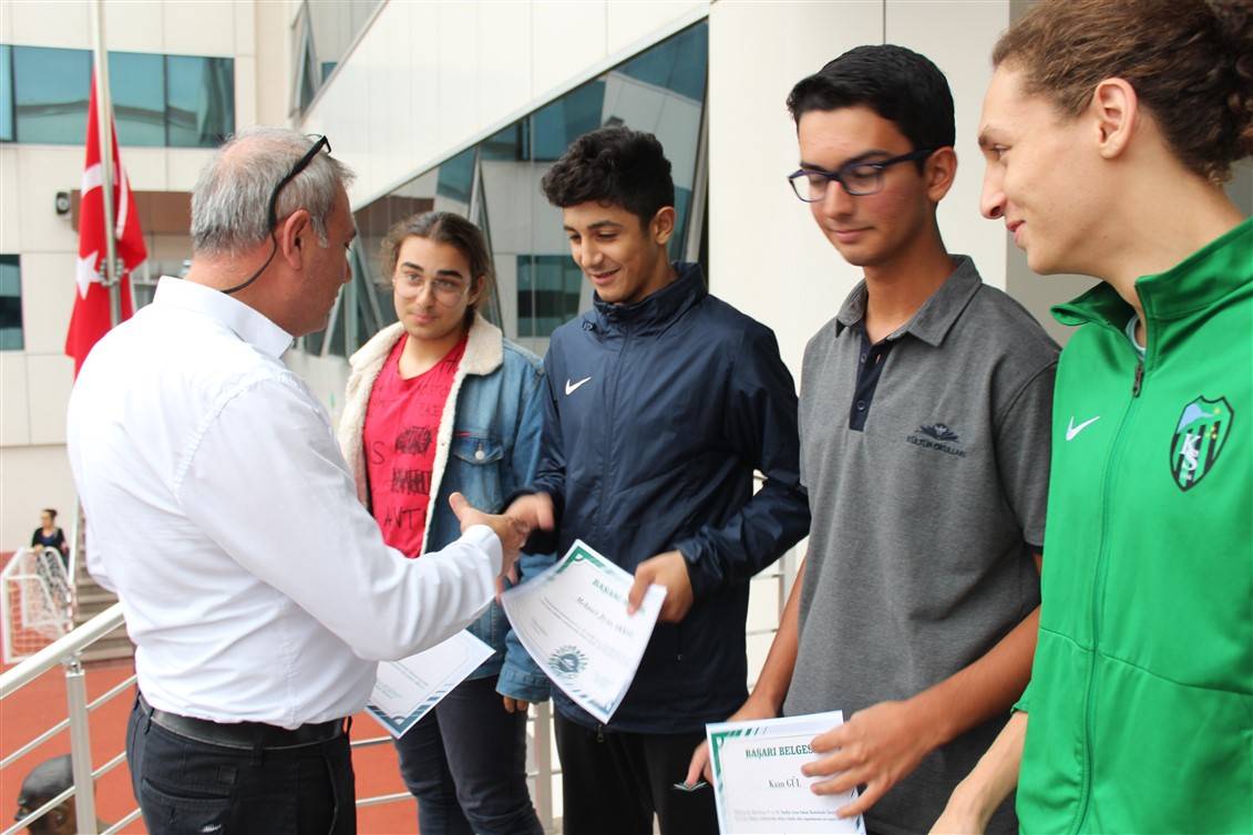 Spor faaliyetlerimiz hız kesmeden devam ediyor. Ortaokul 5. ve 6. sınıf öğrencilerimiz arasında düzenlenen Penaltı Turnuvası\'nda Kerem Karaduman, İrfan Berat Özkar ve Muhammed Efe Karaaslan ilk üçte yer almayı başardılar. Lise 9. ve 10. sınıf öğrencilerimiz arasında düzenlenen Sokak Basketbolu Turnuvası\'nda ise Emre Aygün ve Kaan Gül birinci olurken Mehmet Jiyan Akkaya ve Gökdeniz Konya ikinci oldular. Öğrencilerimize başarı belgelerini ve hediyelerini okul müdürlerimiz takdim ettiler.