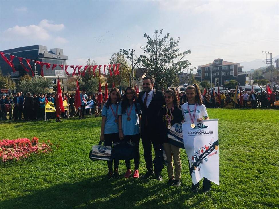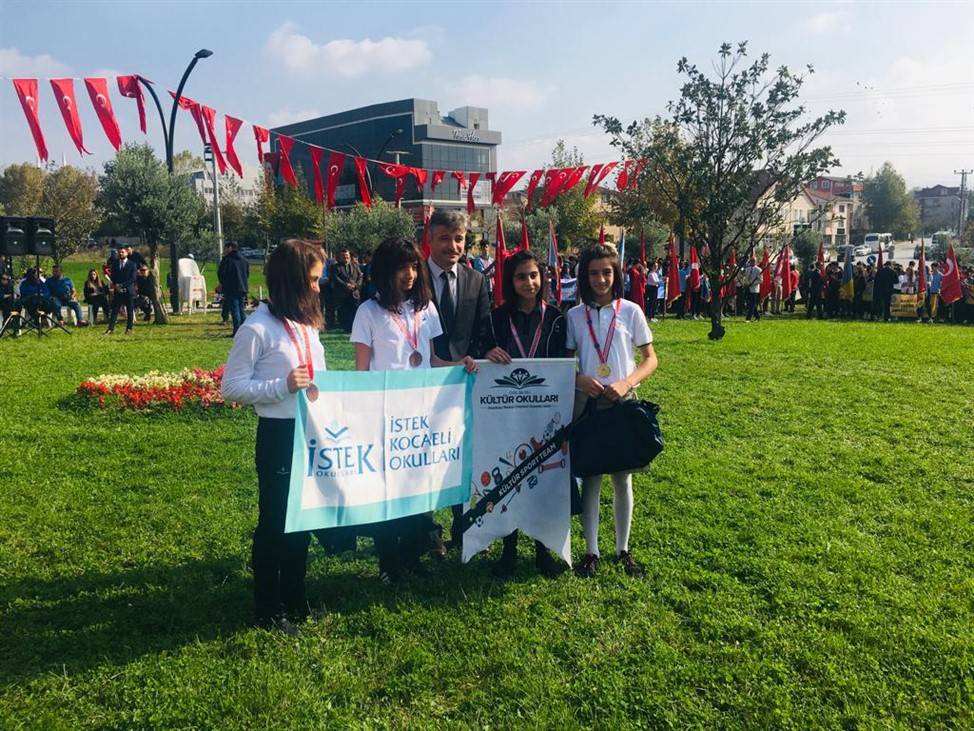 Başiskele\'de düzenlenen 29 Ekim Cumhuriyet Bayramı Koşusu’nda öğrencilerimiz büyük başarı elde ettiler. 800 metre Yıldız Kızlar Kategorisinde Zeynep Aker 1. , Ayşe Betül Şekerci 9. , 600 metre Küçük Kızlar Kategorisinde Rabia Can 2. , 600 metre Küçük Erkekler Kategorisinde Demir Demirkıran 6. , 1000 metre Yıldız Erkekler Kategorisinde Yiğit Zafer Coşkun 4. , Cemal Can 8. , 2000 metre Genç Erkekler Kategorisinde Arda Kıran 5. , Ögeday Tan Akar 7. , 1500 metre Genç Kızlar Kategorisinde Sude Gizem Kanca 8. oldular. Öğrencilerimiz ödüllerini Başiskele Kaymakamlığı önünde gerçekleşen Cumhuriyet Bayramı töreninde aldılar. Öğrencilerimizi tebrik eder başarılarının devamını dileriz.