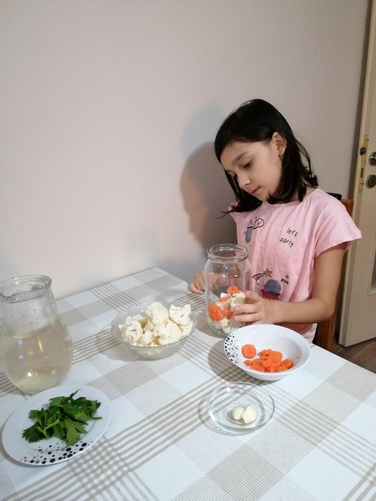 Eko-Okullar Programı kapsamında 6.sınıf öğrencilerimiz Fen Bilimleri dersinde paketlenmiş ürünler yerine, katkı malzemeleri olmadan hazırlanan ürünler daha sağlıklı olduğu için evde turşu kurdular. Öğrencilerimiz kendi elleriyle kurdukları turşuların oluşumları tamamlandıktan sonra afiyetle yediler.