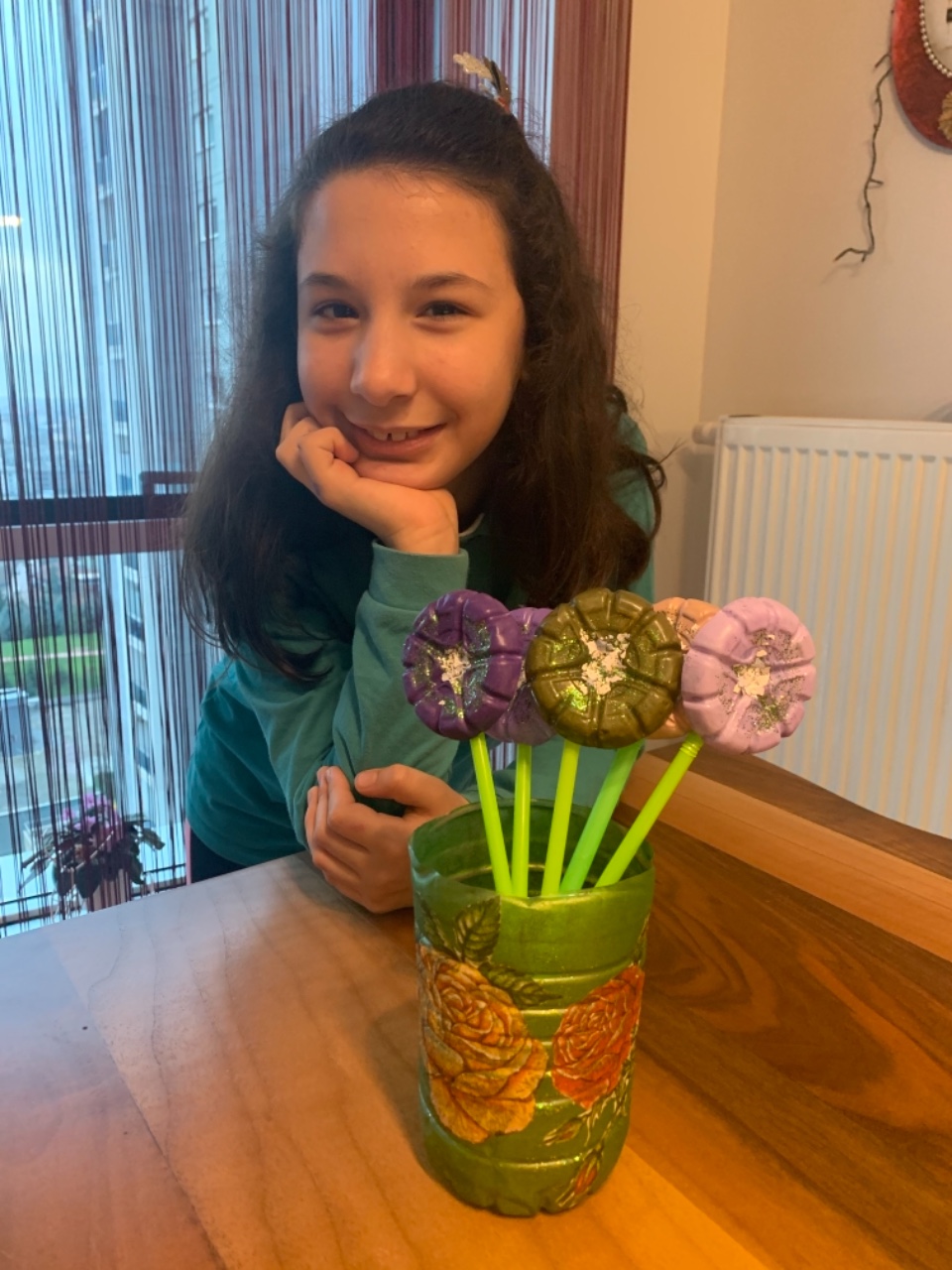 Eko Okular Projesi kapsamında 5. sınıf öğrencilerimizle Fen Bilimleri Dersinde, hem çevre duyarlılığını arttırmak hem de ev ekonomisine katkıda bulunmak amacıyla evlerimizdeki atık plastiklerden geri dönüşüm yaparak onları yeniden kullanılabilir hale getirdik.