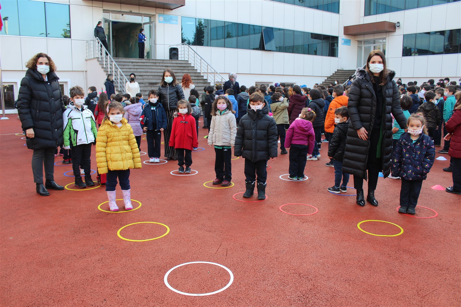 Hasret sona erdi ve ilkokul öğrencilerimize kavuştuk. İlkokul Müdürümüz Nevzat Bayram öğrencilerimize dikkat etmeleri gereken hususlar hakkında genel bilgiler verdi. Bayrak töreninden sonra okulumuzun en minikleri temsili olarak zil çalarak ders başlangıcını yaptılar. Öğrencilerimiz öğle yemeğinden sonra ise Beden Eğitimi Zümremizin hazırladığı spor aktivitelerine katıldılar.