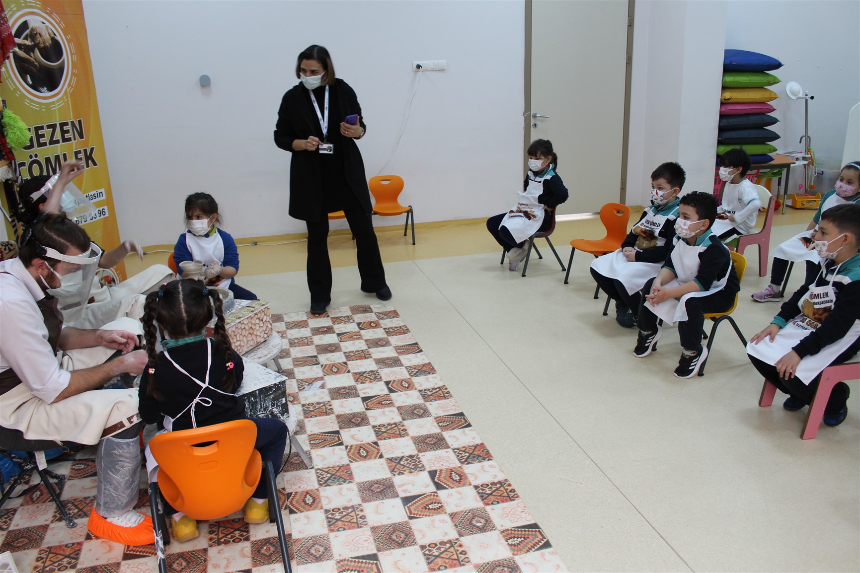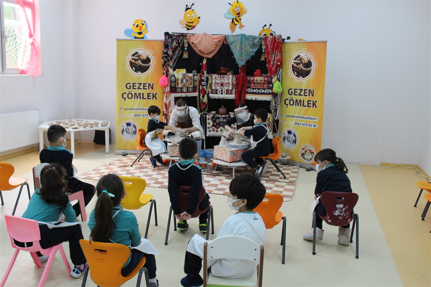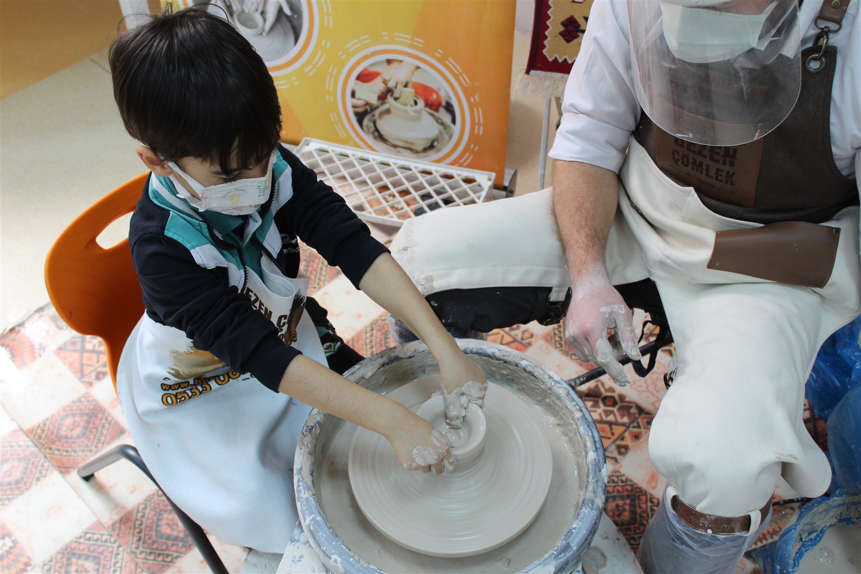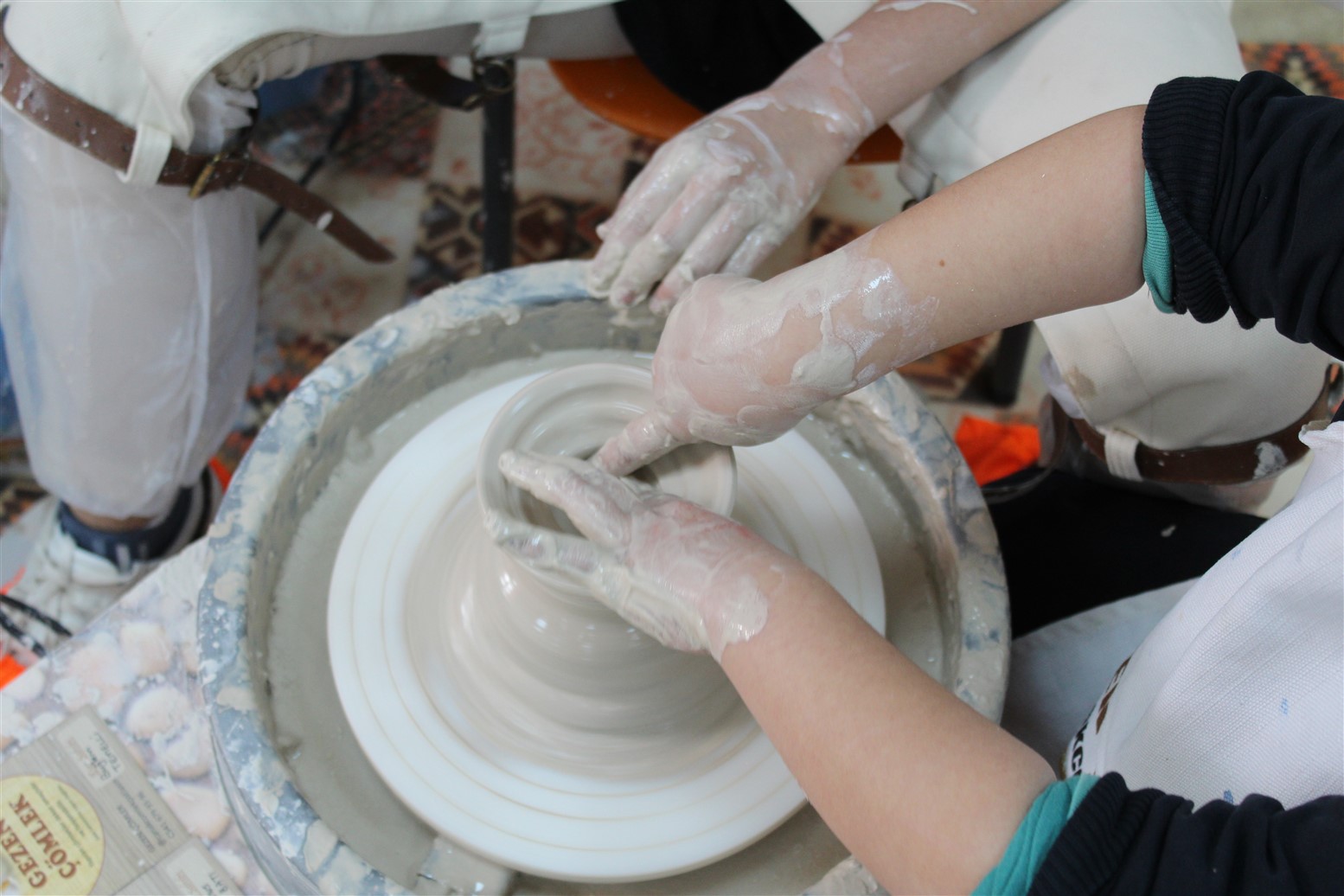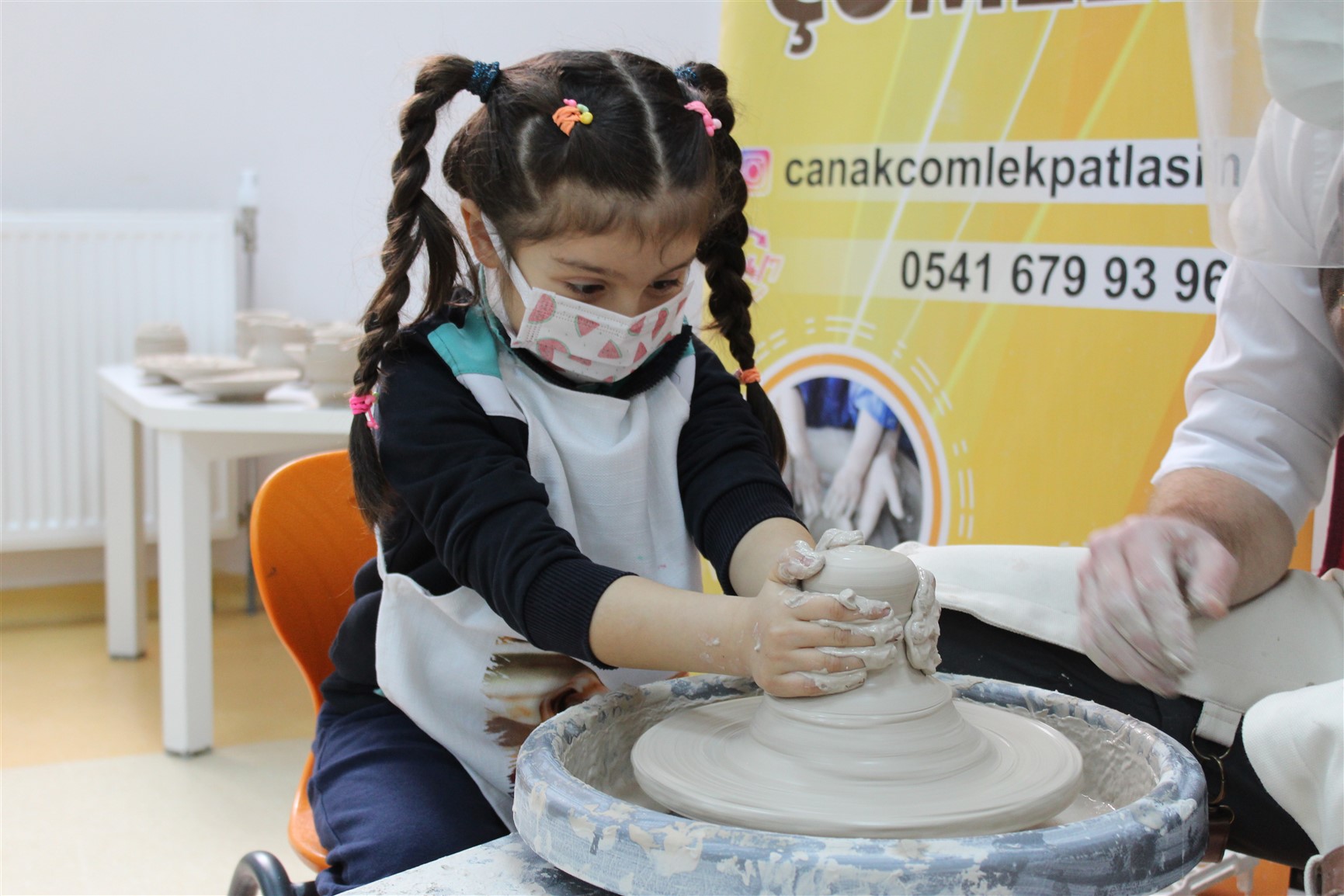 Anasınıfı öğrencilerimiz çömlek yaptılar. Minik elleriyle çeşitli eserler çıkaran öğrencilerimiz, seramik çamura şekil vermenin keyfini çıkardılar.