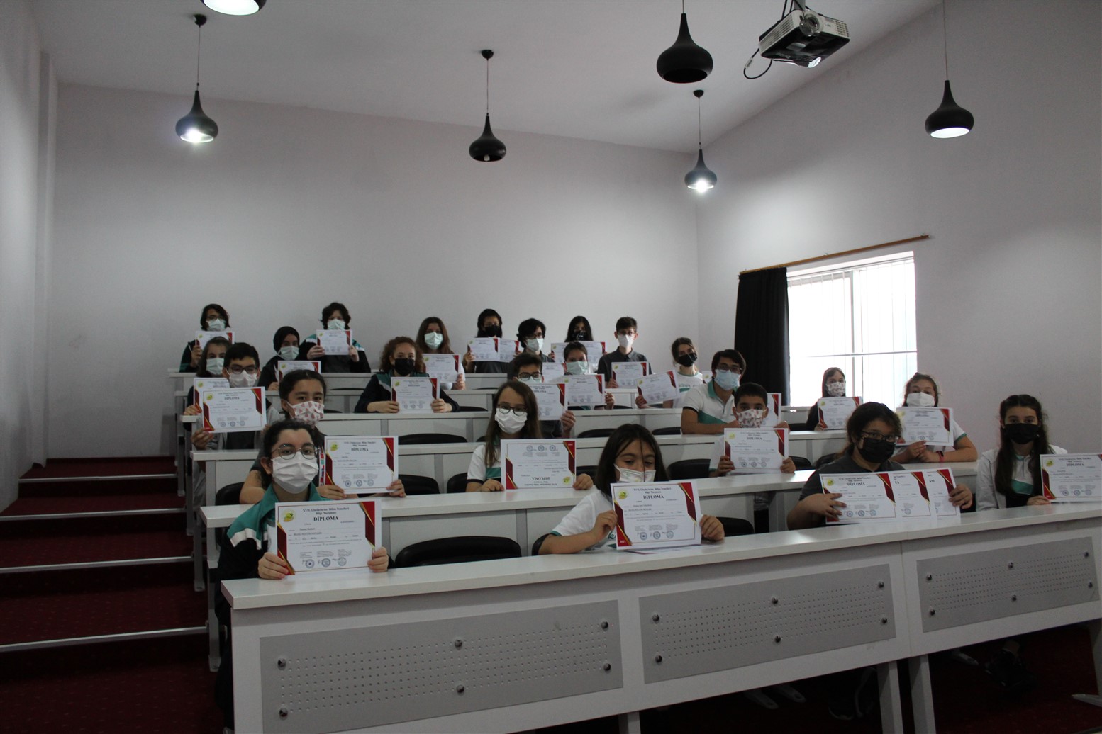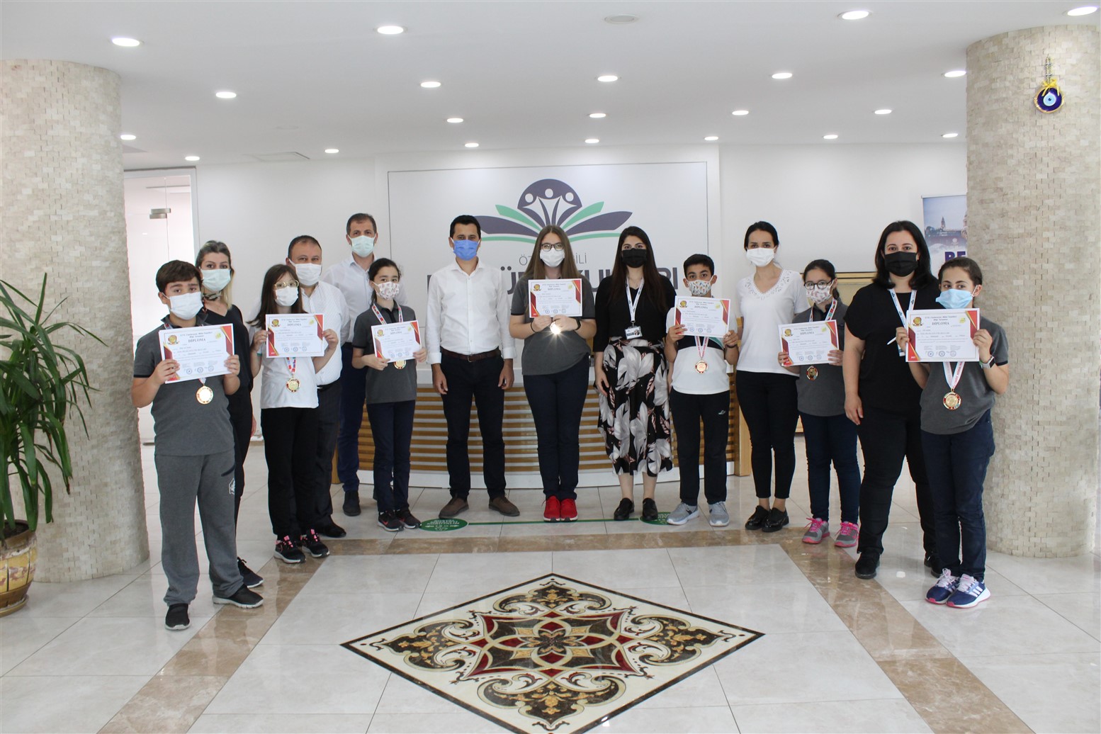 giren sekiz öğrencimize madalyalarını doksan iki öğrencimize ise diploma ve