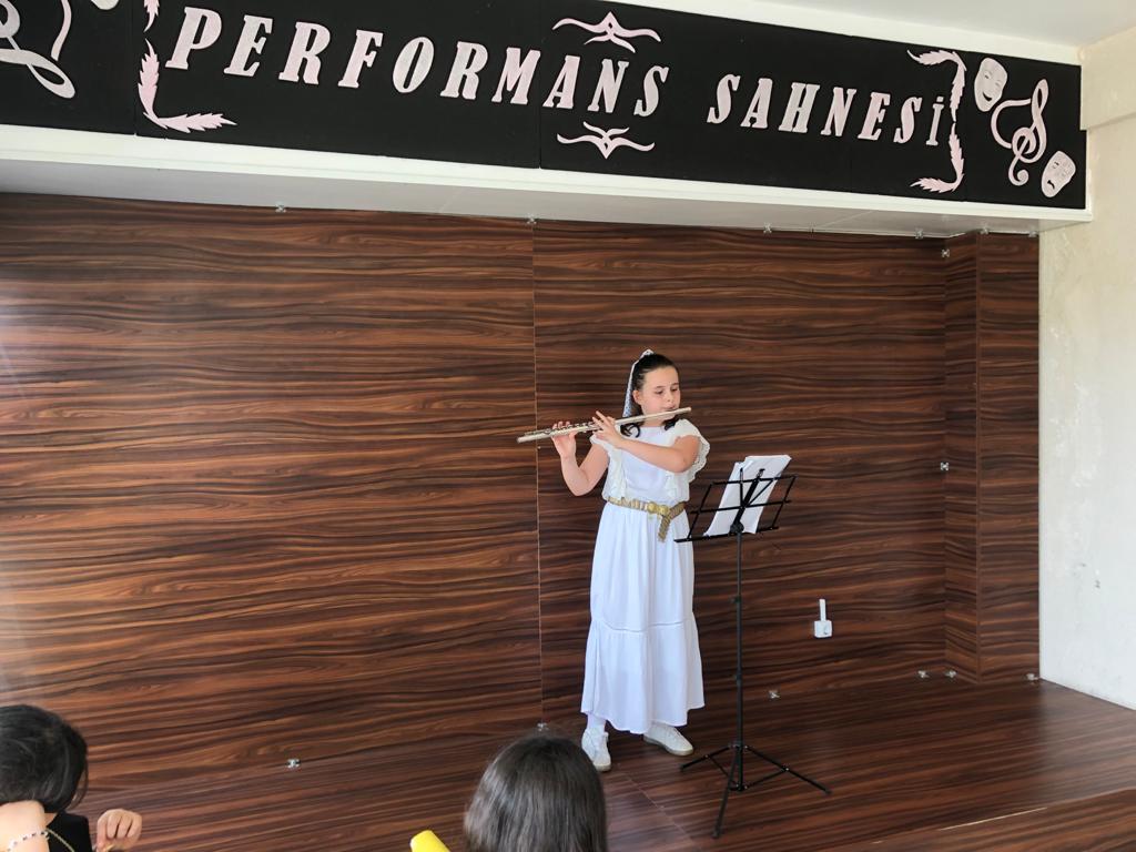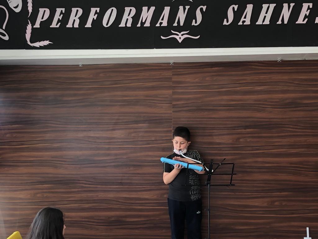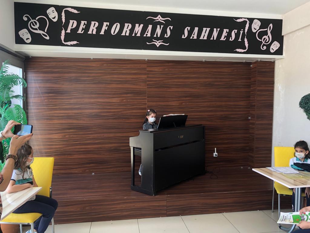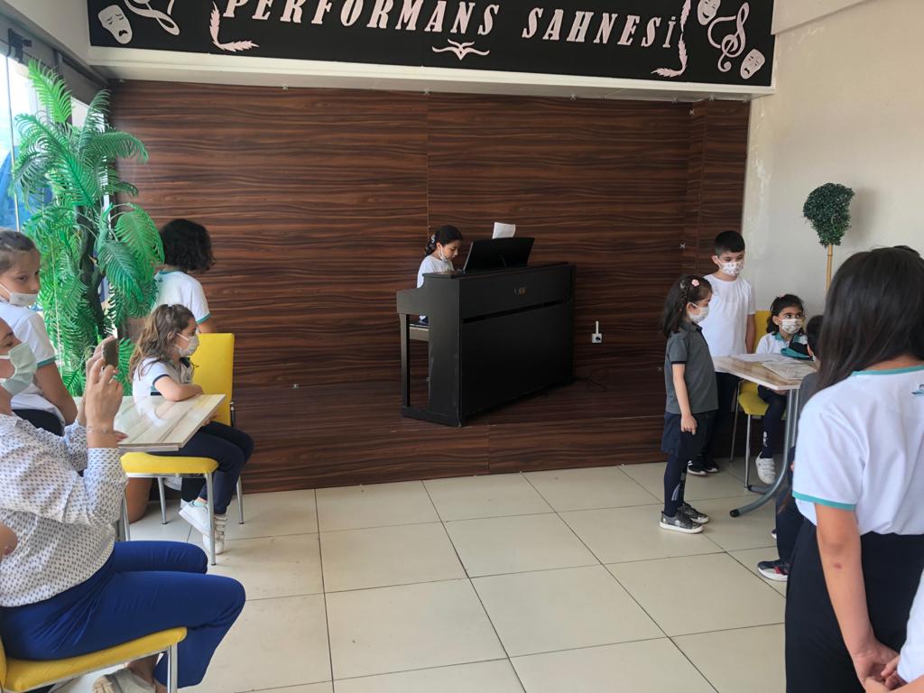 İlkokul öğrencilerimiz müzik dersinde öğrendikleri enstrümanlarla arkadaşlarına sahne şovu yaptılar. Öğrencilerimiz piyano, keman, yan flüt ve melodika çalarak arkadaşlarına müzik dinletisi gerçekleştirdiler. İzleyen öğrencilerimiz ise arkadaşlarını alkışlayarak destekledi.