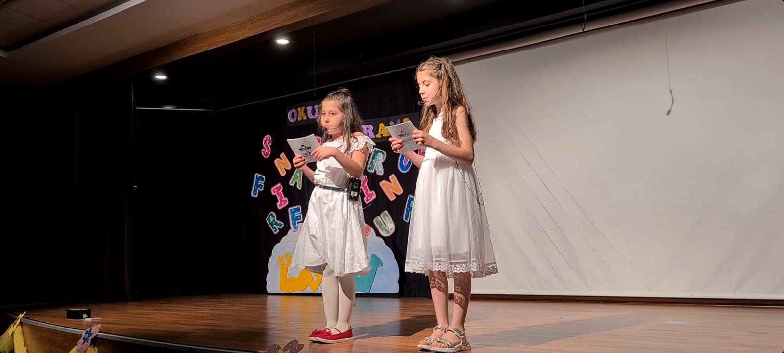 1. Sınıf öğrencilerimiz göz kamaştırıcı gösteriler ile Okuma Bayramı Programı sahnelediler. Kısa zaman da ve büyük emeklerle hazırlanan program renkli ve eğlenceli gösterilere sahne oldu. Genel Müdürümüz İsmail Aydemir’in konuşmasının ardından velilerimiz emeği geçen bütün öğretmenlere teşekkür etmek amacıyla çiçek takdim ettiler.