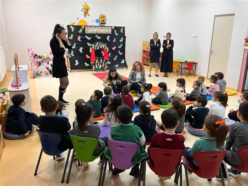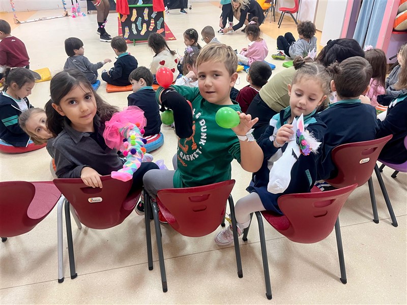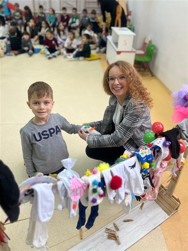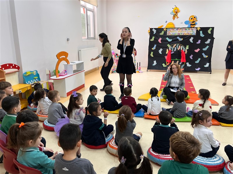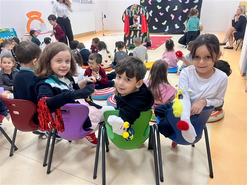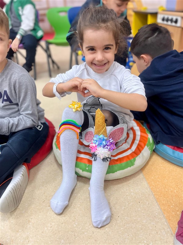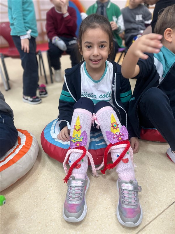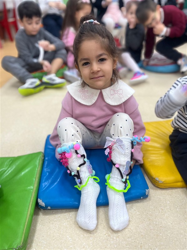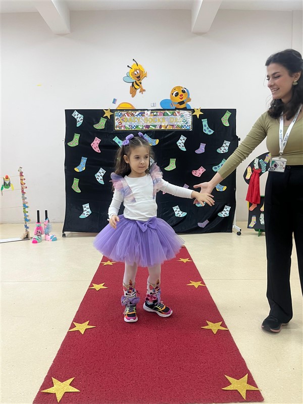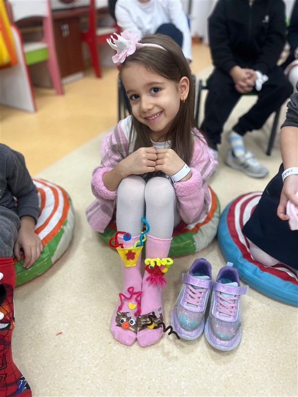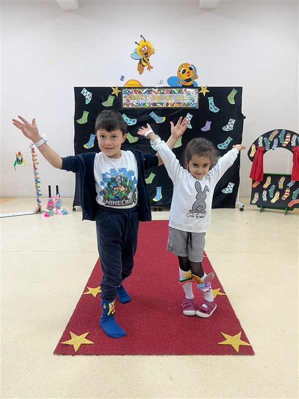 Minik tasarımcılarımız kendi çılgın çoraplarını tasarladı, onları eğlenceli bir kukla gösterisinde canlandırdı ve öğretmenlerinin onlar için yazdığı Crazy Socks Hikayesi’ni dinlediler. Sorulara yanıt verdiler, tasarımlarını podyum yürüyüşüyle sergilediler ve günü renkli bir Crazy Socks Partisiyle tamamladılar! Çünkü öğrenmek, en çılgın çoraplarımızı giydiğimizde her zaman daha eğlenceli! 🩷