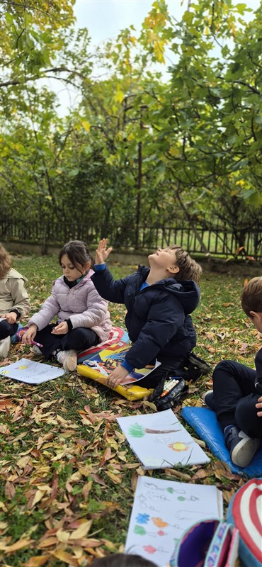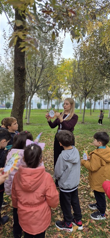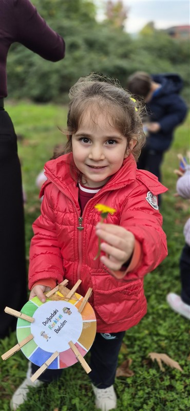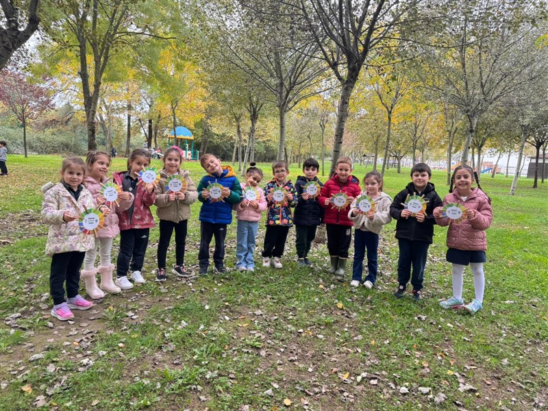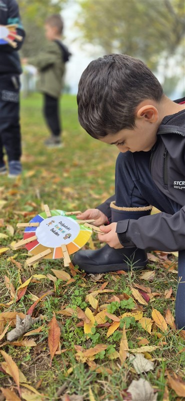Öğrencilerimizle doğadaki değişimleri incelemek ve gözlem yapmak amacıyla keyifli bir yürüyüş gerçekleştirdik. Doğayı dikkatle inceledik, gördüklerimizi ve duyduklarımızı renklerle resmettik. Renk çarkımızı kullanarak yaprakların birbirinden güzel tonlarını grupladık, doğanın büyüleyici renk armonisini keşfettik.