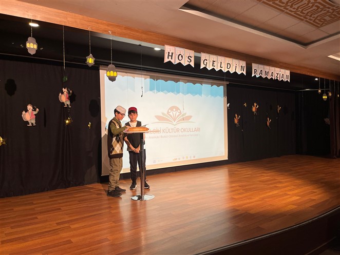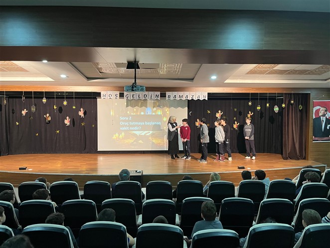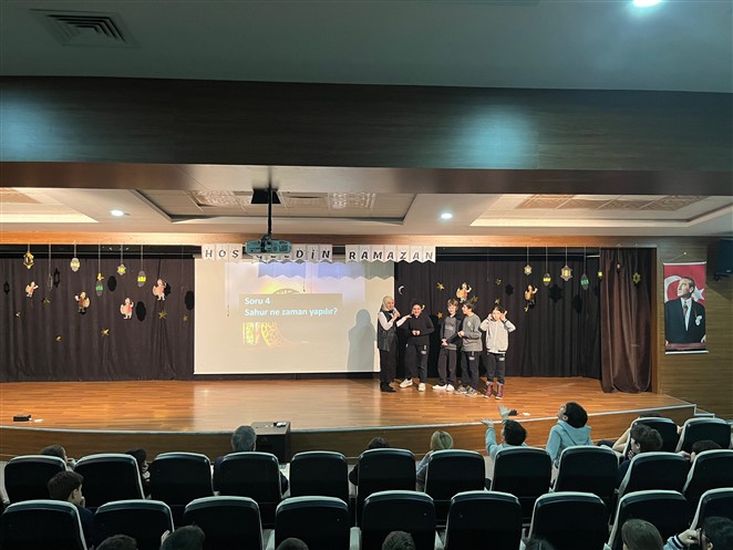 Ramazan ayının manevi atmosferini hep birlikte karşılamak amacıyla düzenlediğimiz “Hoş Geldin Ramazan” programı büyük bir coşku ve anlam içinde gerçekleştirildi. Yarışmalarla öğrencilerimiz hem bilgilerini ortaya koydu hem de keyifli anlar yaşadı. Koro ekibimizin seslendirdiği eserler salona huzur katarken, sahnelenen tiyatro gösterisi programın anlamını pekiştiren güçlü bir bölüm oldu.
