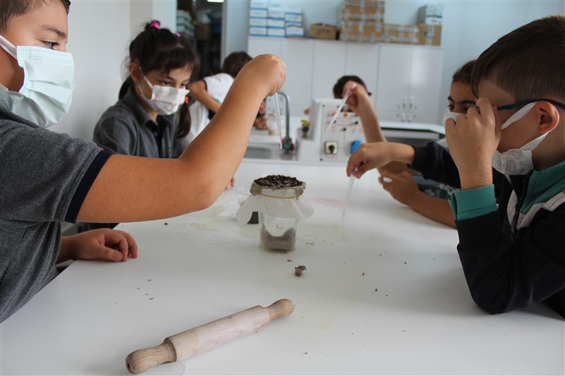 Eğlenceli Bilim dersinde 3. sınıf öğrencileri ile yaptığımız ‘İklim Değişikliği’ konulu çalışmamızda yer altı sularının nasıl oluştuğunu öğrendik. İklim değişikliğini kavrayabilmek için yapılan deneyimizde öğrencilerimiz eğlenerek öğrendiler.