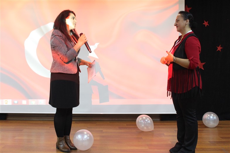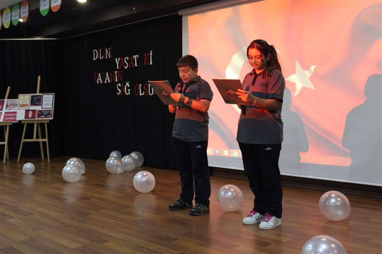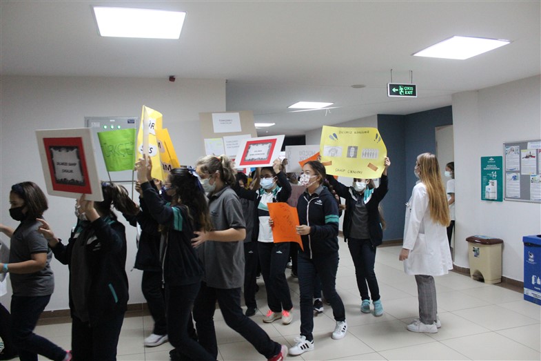 Dilimizin, yani millî kimliğimizin bayramı 26 Eylül “Dil Bayramı'nın 89. yıl dönümünü kutlamak amacıyla Türkçe Zümresi olarak düzenlediğimiz programımızda Türk Dili ve Edebiyatı Öğretmenimiz Senem Yaşar’ı konuk ettik. Okunan şiirler, hazırlanan sunumlarla günün anlam ve öneminin üzerinde dururken diline, bayrağı gibi sahip çıkması gereken bir nesil yetiştirmek için “Türkçem benim ses bayrağım.” sloganlarıyla yürüyüşler düzenledik. Dilinin başka dillerin boyundurluğuna girmemesi gerektiğini bilen bir nesil olarak öğrencilerimiz yaptıkları pankartlarla sergi açıp tüm öğrenci gruplarımıza örnek olmaya çalıştılar.