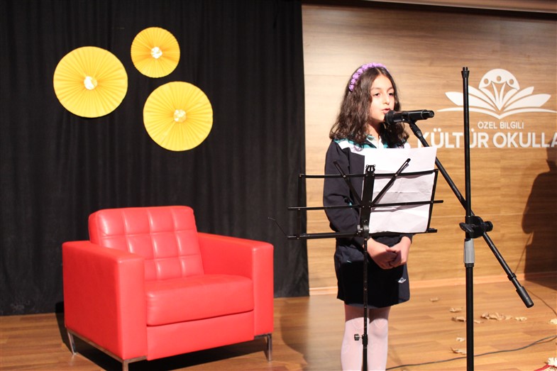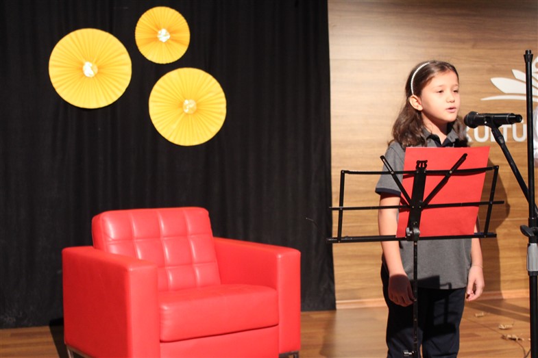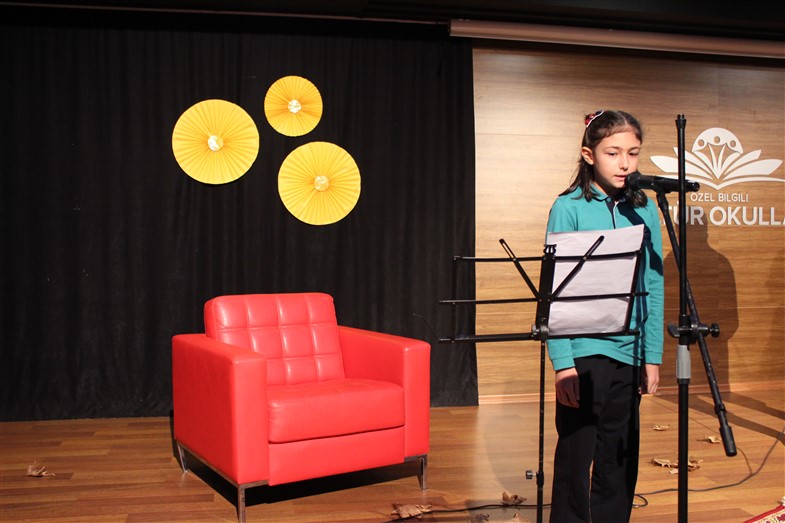Okulumuzda 3. ve 4. Sınıflar arasında düzenlemiş olduğumuz "Şiir Okuma Yarışması"nda en güzel şiiri okuyan öğrencilerimiz konferans salonunda arkadaşlarına şiir dinletisinde bulundular.Birinci olan öğrencilerimize Başarı Belgeleri takdim edildi.