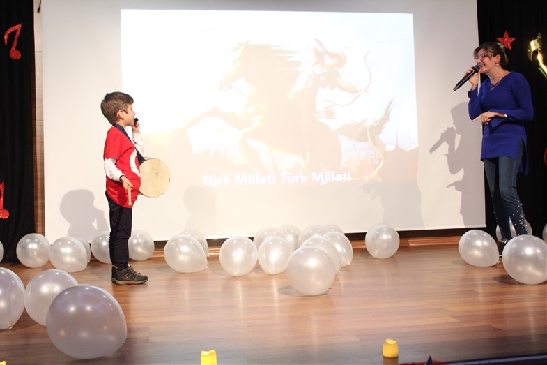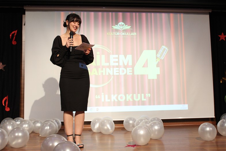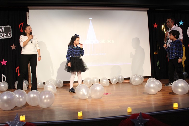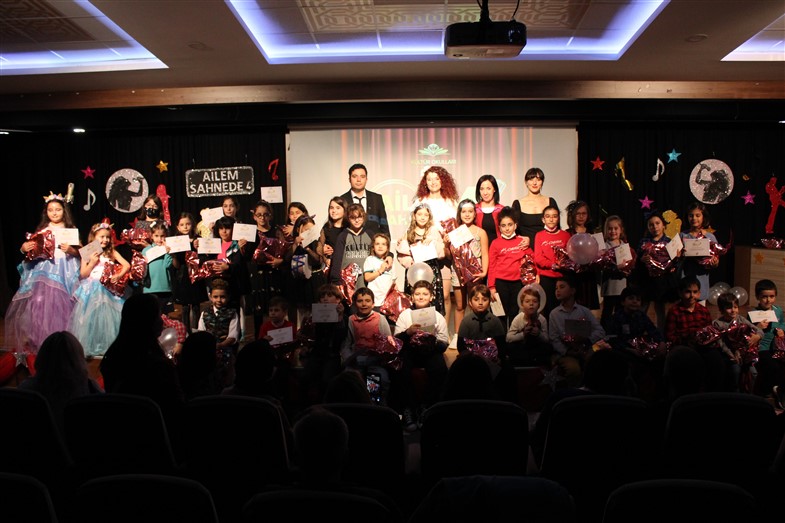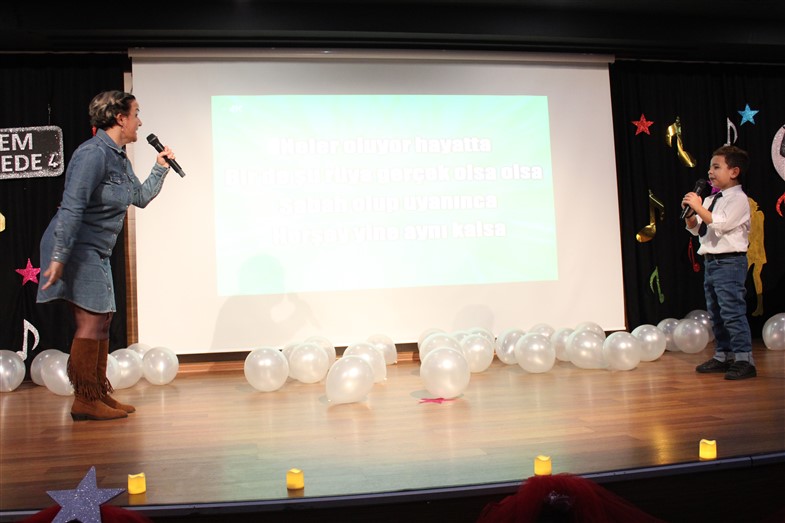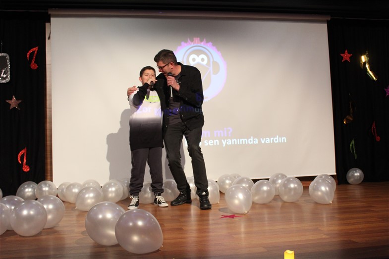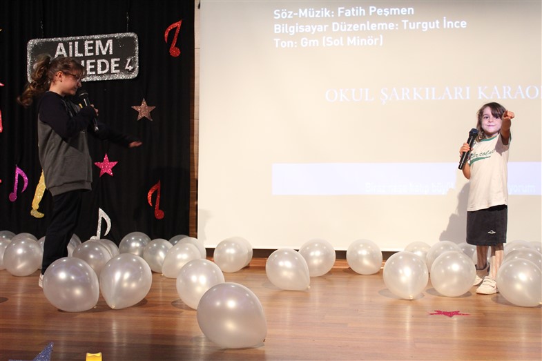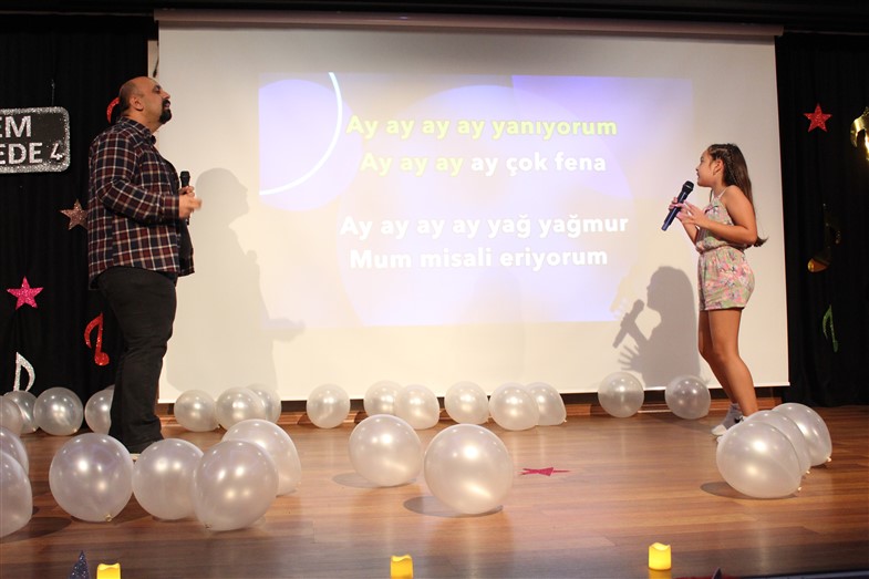 öğrencilerimiz sahnede aileleriyle beraber şarkı söyledi. Bu sahneyi aynı