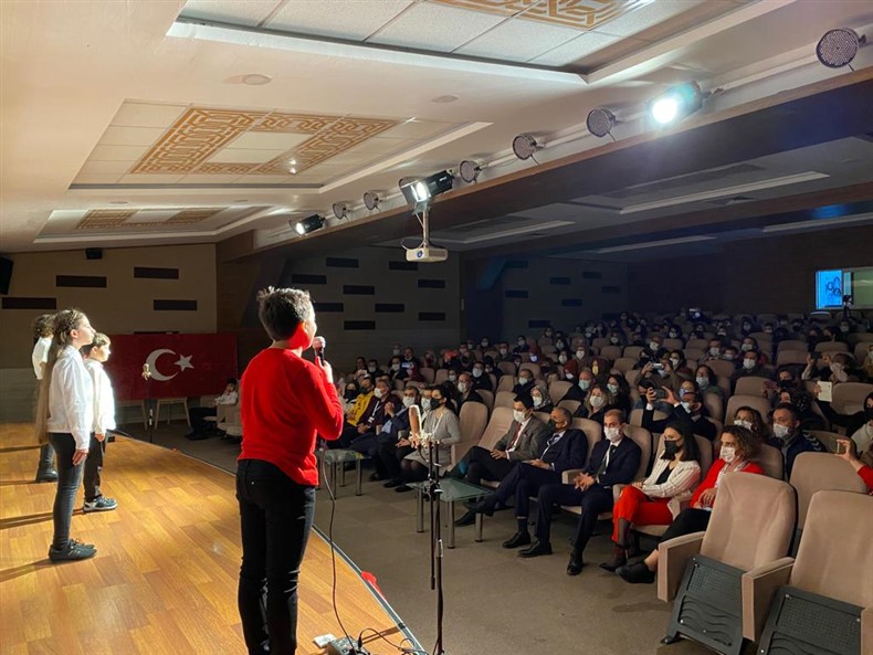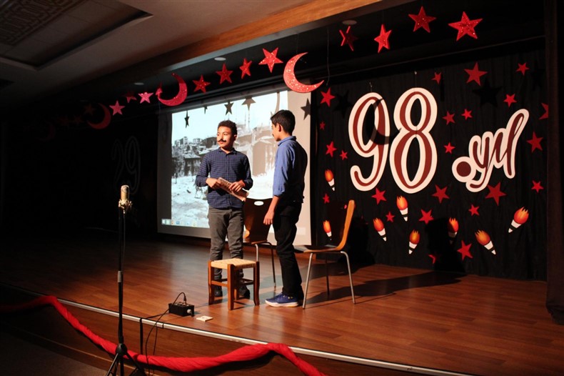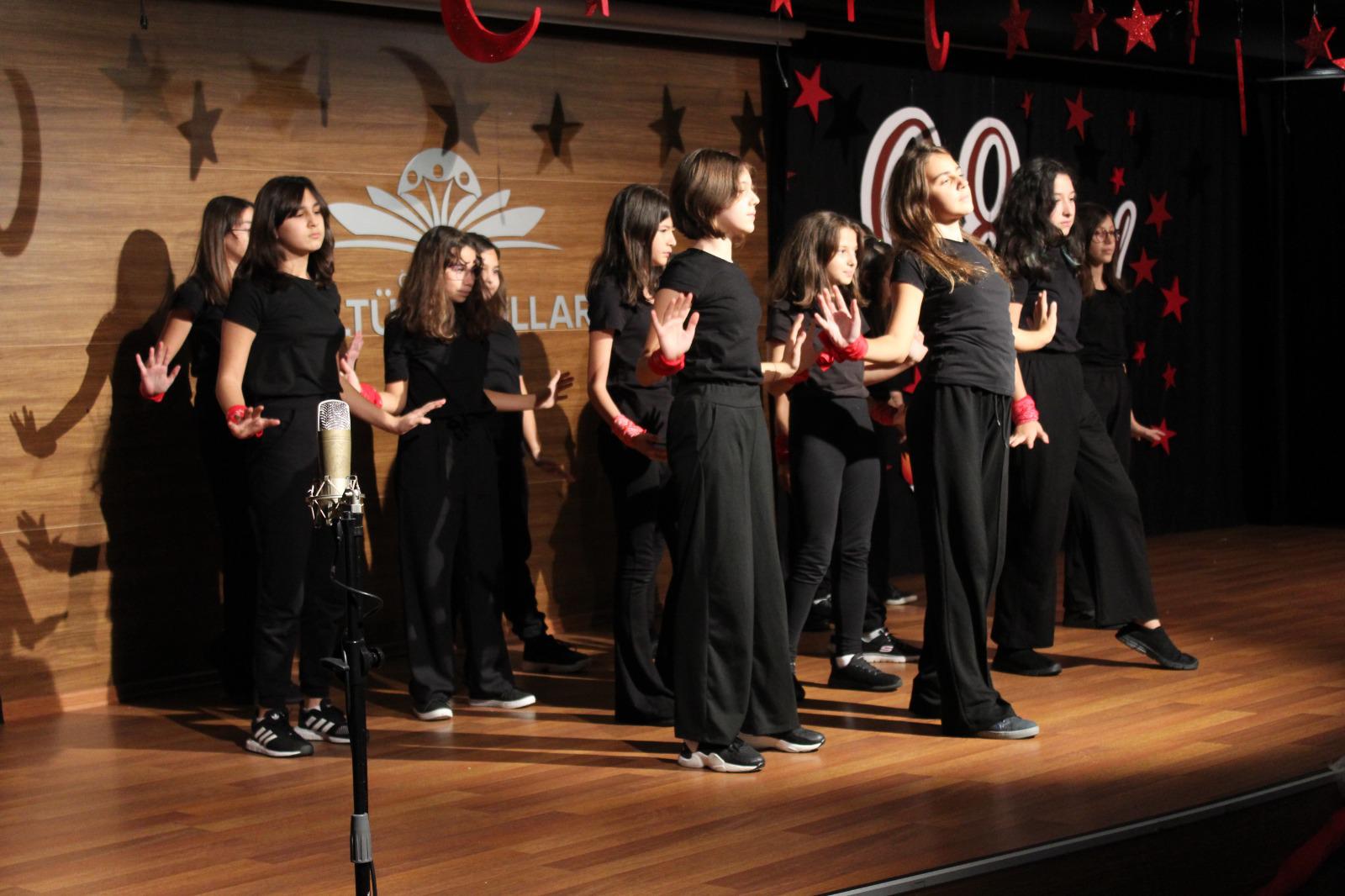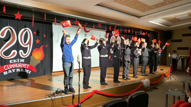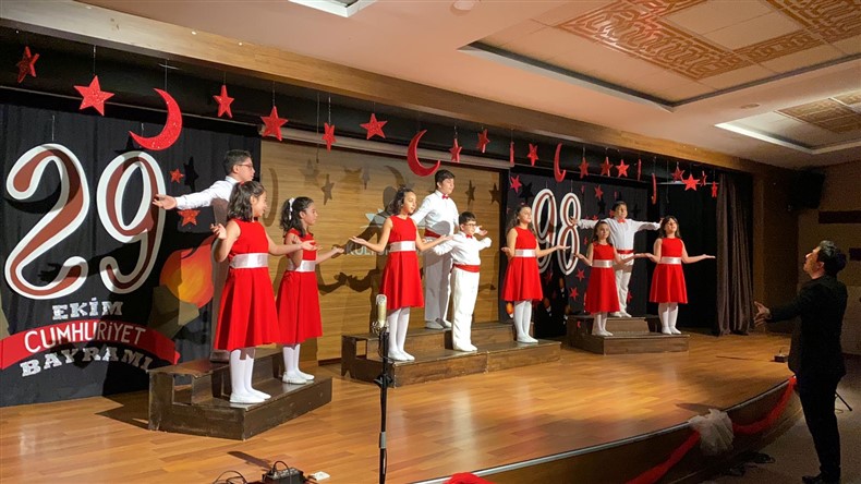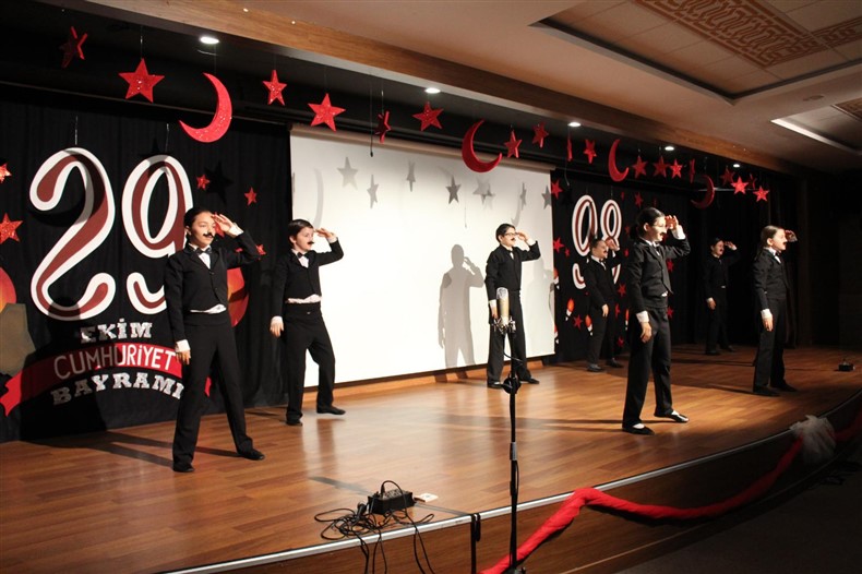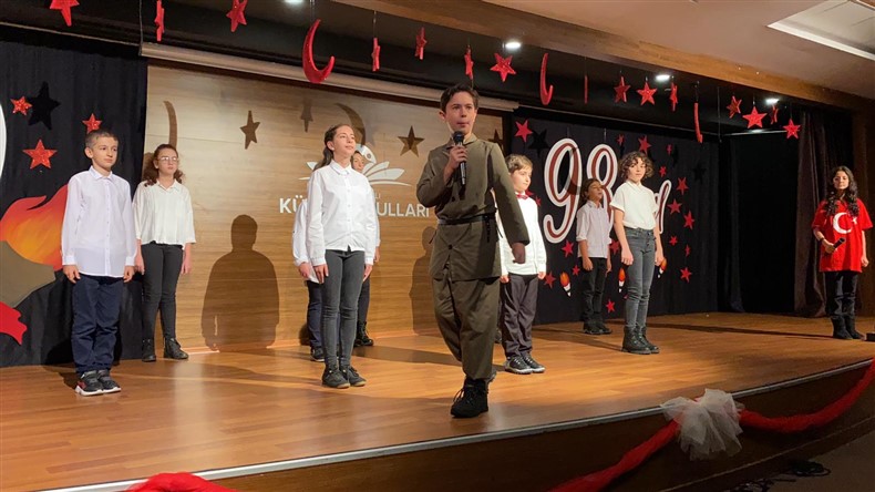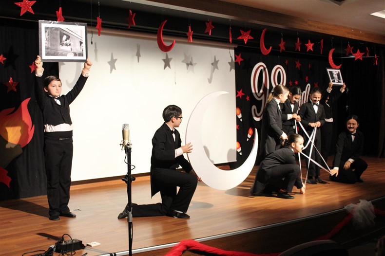 Cumhuriyetimizin kuruluşunun 98. Yıl dönümünü Ortaokul öğrencilerimizin hazırladığı muhteşem bir törenle kutladık. Okulumuzun konferans salonunda gerçekleşen törende öğrencilerimiz başarılı performanslar sergiledi. Saygı duruşu ve İstiklal Marşı ile başlayan törende Ortaokul Müdürümüz Çağlar Akkaş günün anlam ve önemine dair konuşmasını yaptı. Öğrencilerimiz tiyatro, dans gösterisi ve koro performanslarını arkadaşları ve velilerin beğenisine sundular. Oldukça başarılı performansların coşku ile sergilendiği törende zaman zaman duygu dolu anlar yaşandı. Ulu Önder Gazi Mustafa Kemal Atatürk’ün bizlere emaneti olan Cumhuriyet’in 98. Yılı hepimize kutlu olsun.