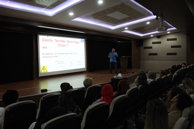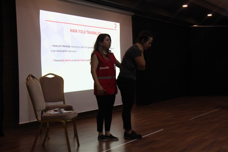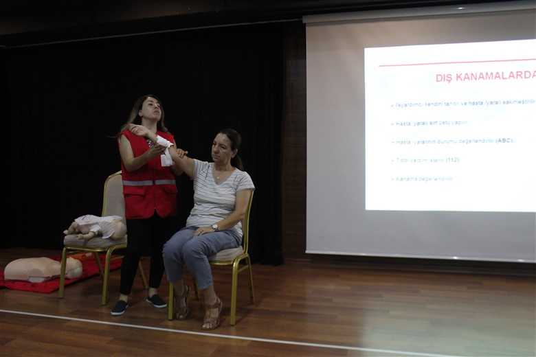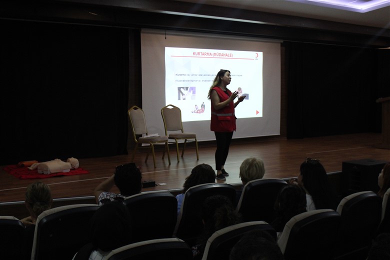İlkyardım ve İş Sağlığı Güvenliği konusunda öğretmenlerimizi bilinçlendirmek için Uzman kişiler tarafından; Temel İlkyardım bilinci geliştirmeyi, Acil ve Afet durumlarında hayat kurtaran ilkyardım eğitimlerini, İş Sağlığı Güvenliği açısından okul ve kurumlarda olması gereken olumlu ve psikolojik risk etmenlerinin eğitimi verildi.