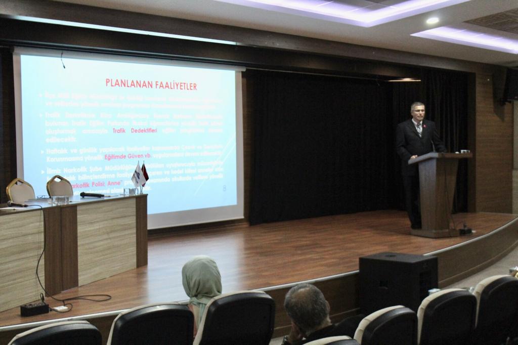 Öğrencilerin Eğitim Süreçlerinin Güvenliğine İlişkin Koruyucu Önleyici Hizmet ve Tedbirlerin Arttırılmasına Yönelik İş Birliği Protokolü kapsamında Eğitim Kurumlarında yapılan çalışmalar ve Protokol Tanıtım toplantısını okulumuz da gerçekleştirdik. Protokol de İlçe Kaymakamı Sayın Necip Çakmak, İlçe Milli Eğitim Müdürü Sayın Cemil Akkaya, İlçe Emniyet Müdürü Sayın Faruk Bilen, İlçe Jandarma Komutanı J.Asb.Kd.Bçvş. Gürbüz Göksu; İlçemizde bulunan tüm Okul Müdürlerinin katılımıyla gerçekleşen toplantıda müdürlerimizi bilgilendirerek sorularını yanıtladılar.