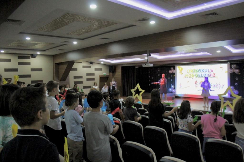 İlkokuldan mezun olup Ortaokula başlamanın heyecanını yaşayan öğrencilerimiz, yeni eğitim öğretim yılının başlamasının verdiği coşkuyu yaşıyor. Oryantasyon sürecinde öğrenciler meraklı bekleyişleri ile bugün sınıflarını öğrendiler. Öğrencilerimiz için düzenlenen partide müzik, dans ve pasta kesimi ile arkadaşlarıyla beraber keyifli dakikalar geçirdiler.