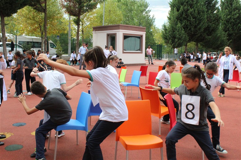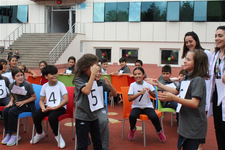 Matematik zümremiz ile Ortaokul öğrencilerimize çarpım tablosunu, geleneksel Sandalye Kapmaca oyunu ile sevdirdik. Oyunda, sona kalan 2 öğrencimizden hangisi üzerindeki sayıların çarpımı sonucunu, ilk ve doğru söylerse yarışmaya devam etmeye hak kazanıyordu. Eğlenerek öğrenmeyi amaç edindiğimiz oyun sayesinde artık öğrenciler çarpım tablosunu kolayca öğrenip sevmeye başladı.